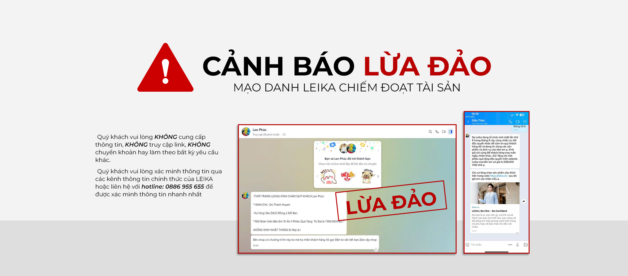 CẢNH BÁO LỪA ĐẢO MẠO DANH LEIKA CHIẾM ĐOẠT TÀI SẢN
