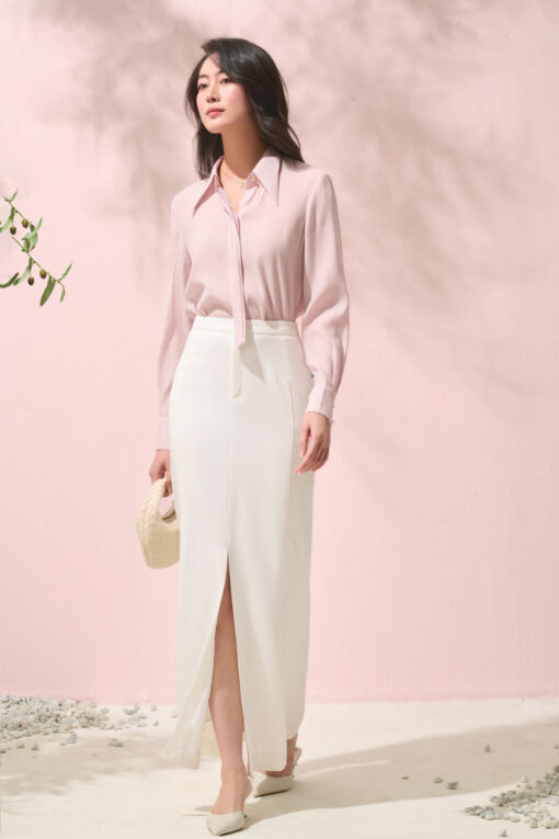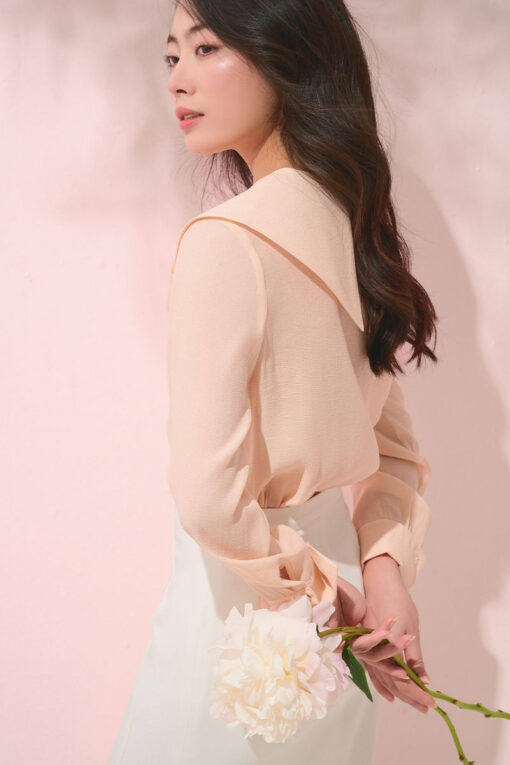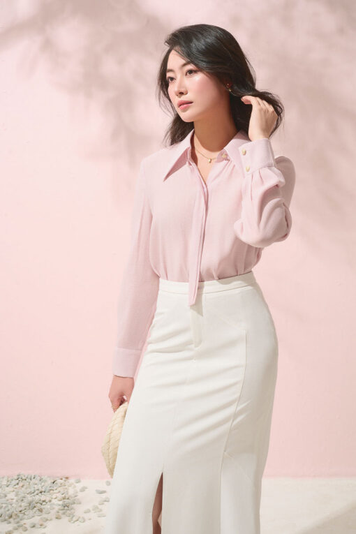Sơ mi LT tay liền can xếp ly cách điệu