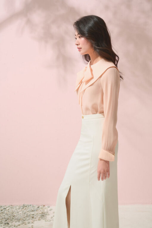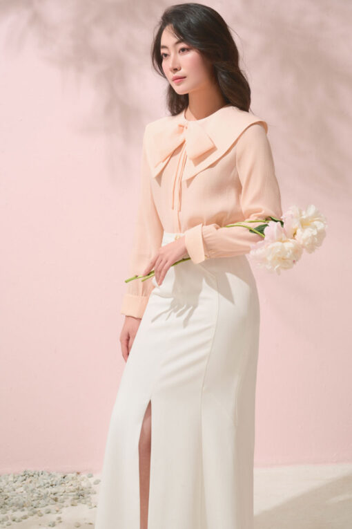 Sơ mi DT lá cổ to đính nơ
