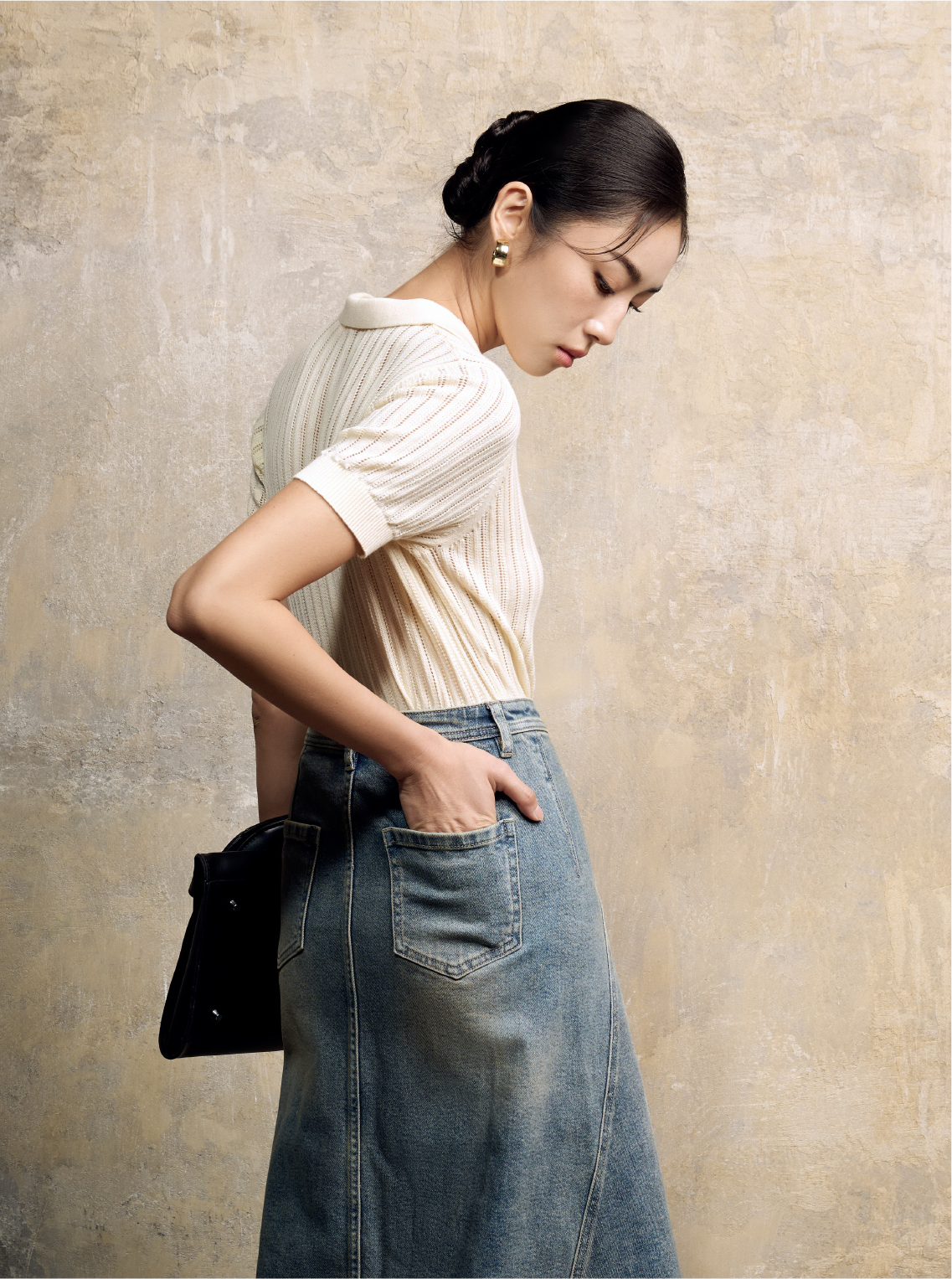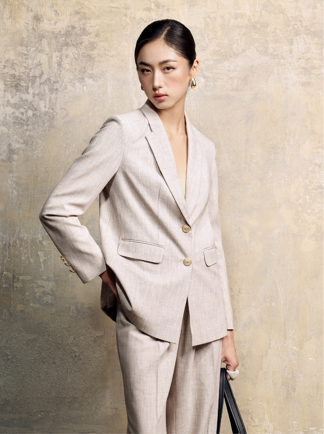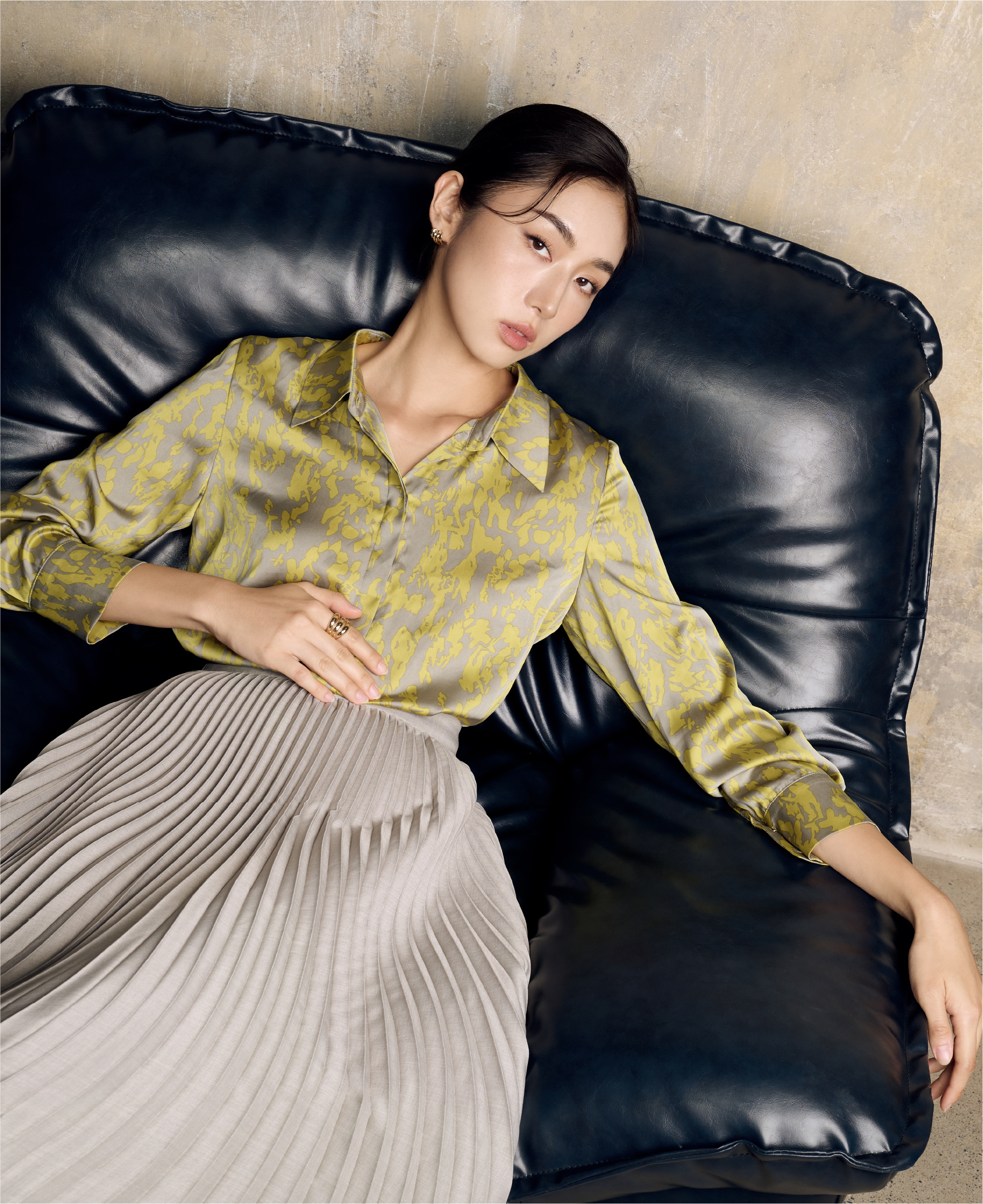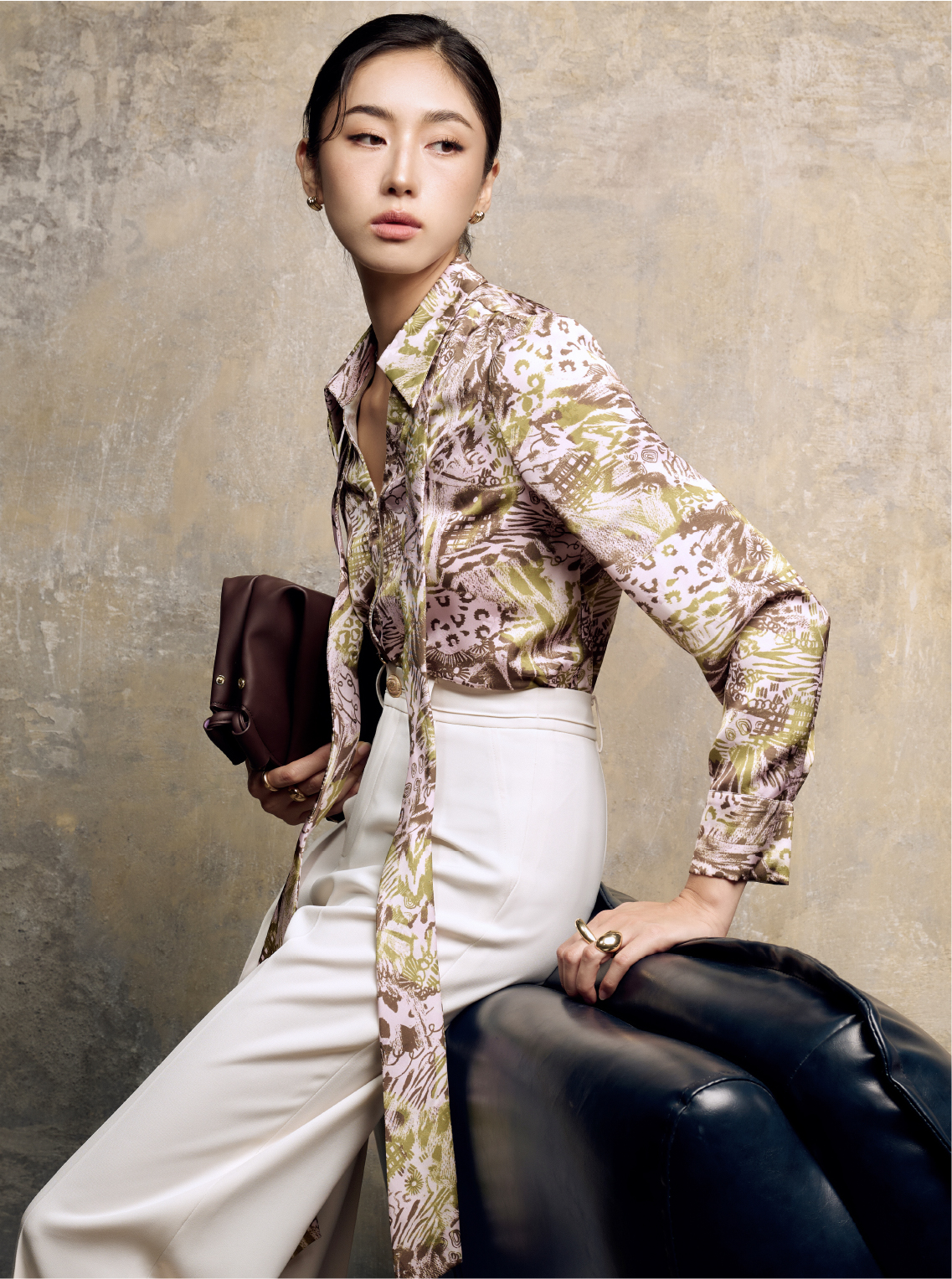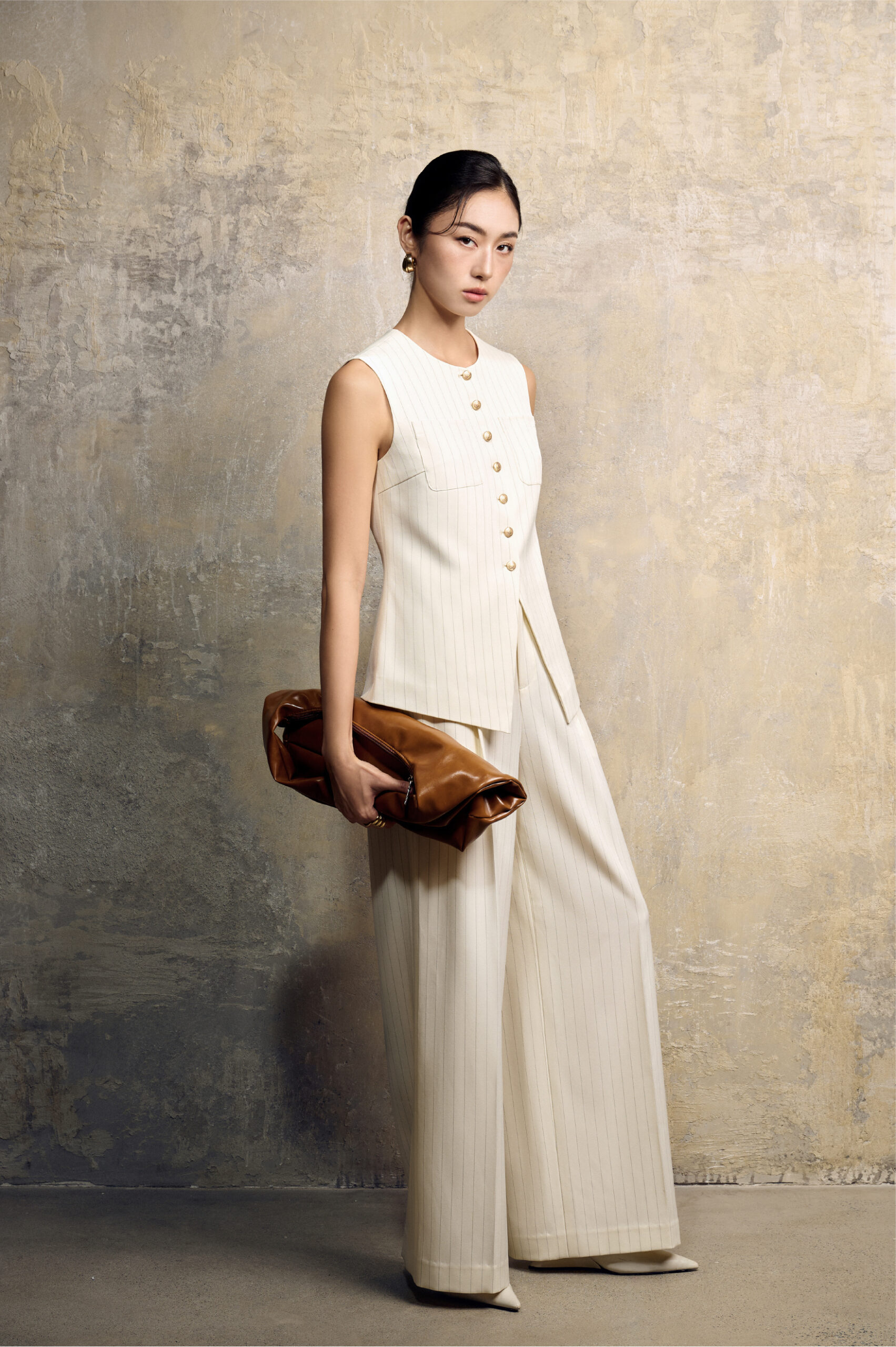 Bộ sưu tập tập trung vào cấu trúc và sự tinh giản: đường cắt dứt khoát, form dáng tối giản nhưng được điều chỉnh khéo léo theo chất liệu. Cùng với họa tiết loang nhẹ đặc trưng, mỗi thiết kế trở thành “không gian” tinh khiết, nơi ánh sáng tìm thấy chỗ trú ngụ và lan tỏa.