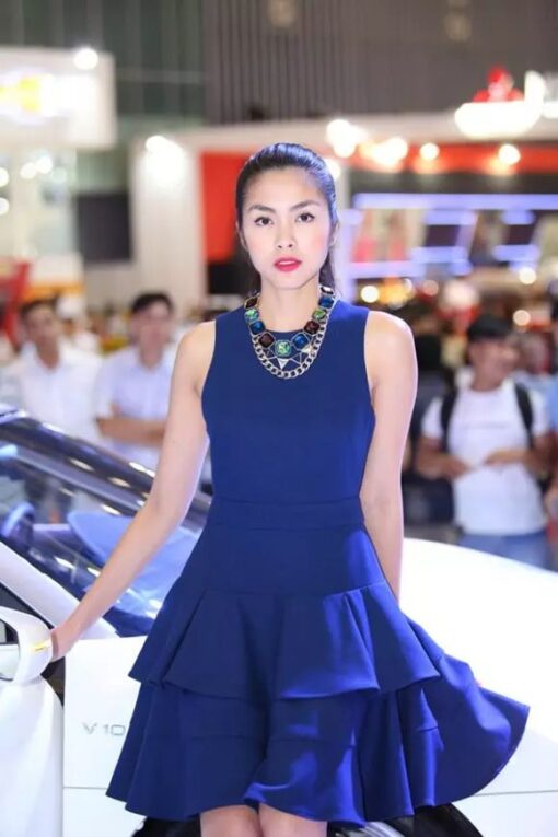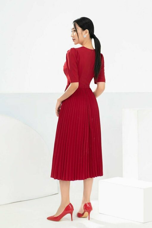 >>> Da ngăm mặc váy màu gì? Đầm A đai eo ngực xếp ly