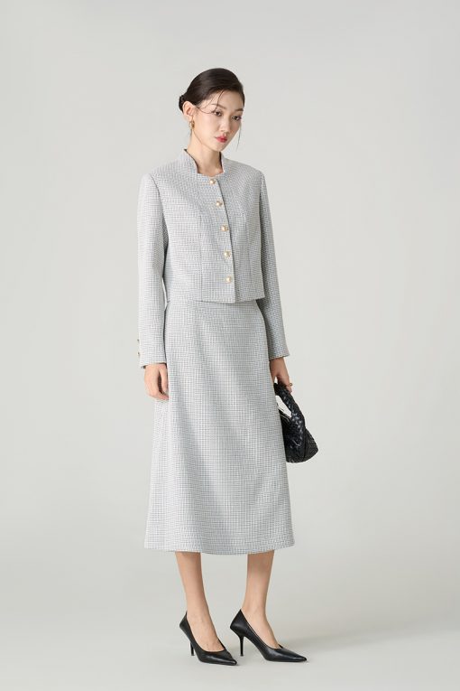 Áo khoác tweed croptop nẹp can cá đính cúc