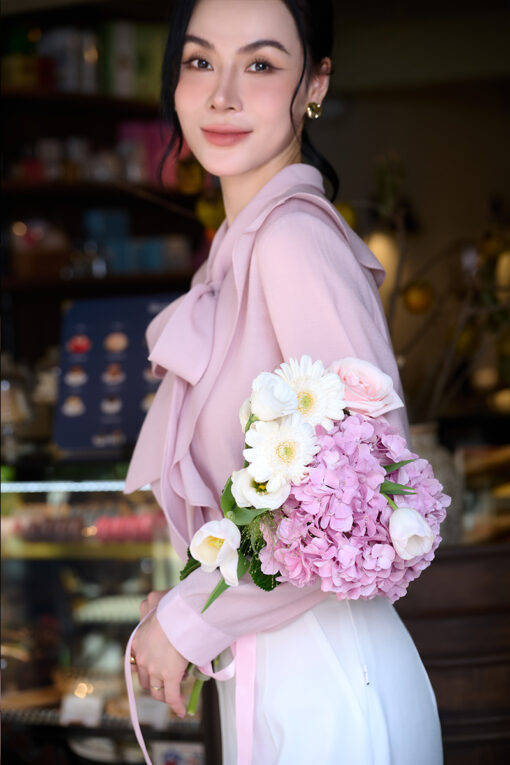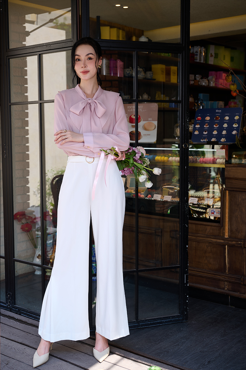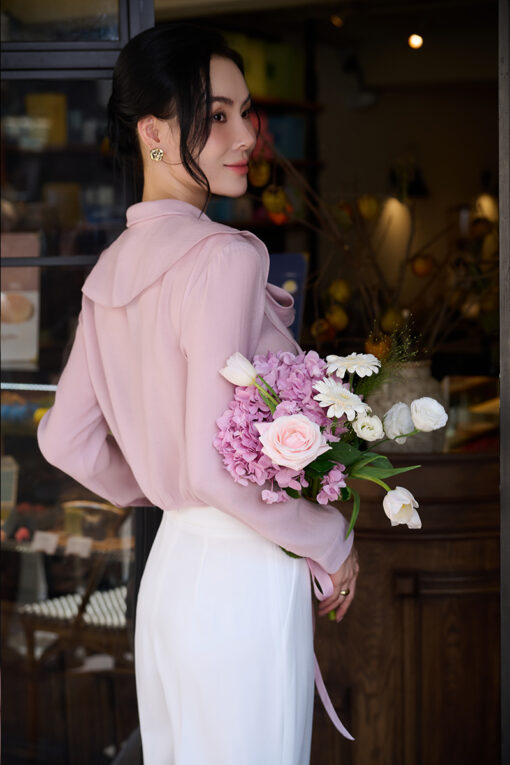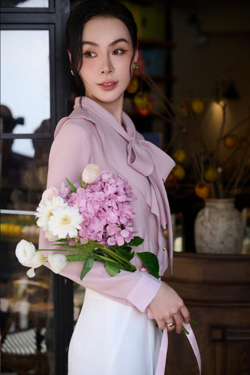 Sơ mi DT nẹp cổ bèo buộc nơ