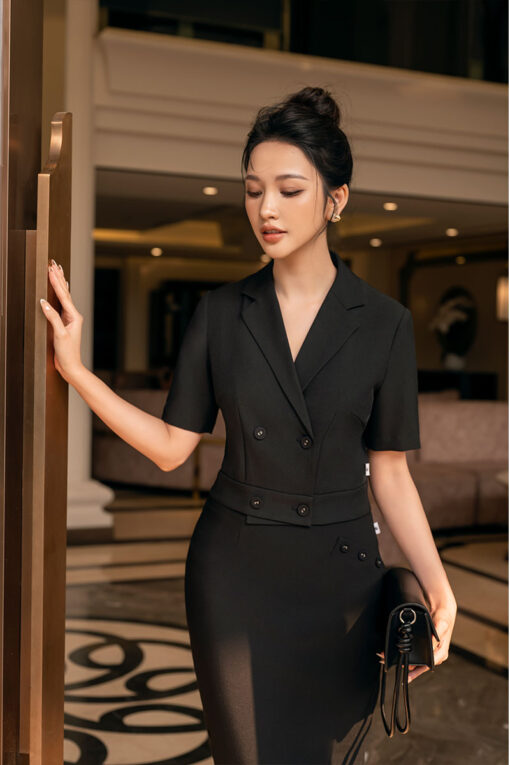Đổi gió cho phong cách công sở truyền thống bằng chiếc áo kiểu tay lửng và chân váy cùng tone. Outfit tạo nên vẻ ngoài trẻ trung, năng động nhưng vẫn giữ nét thanh lịch cần có. Đôi sandals quai mảnh sẽ là điểm chốt hoàn hảo giúp nàng thêm phần nhẹ nhàng, duyên dáng.