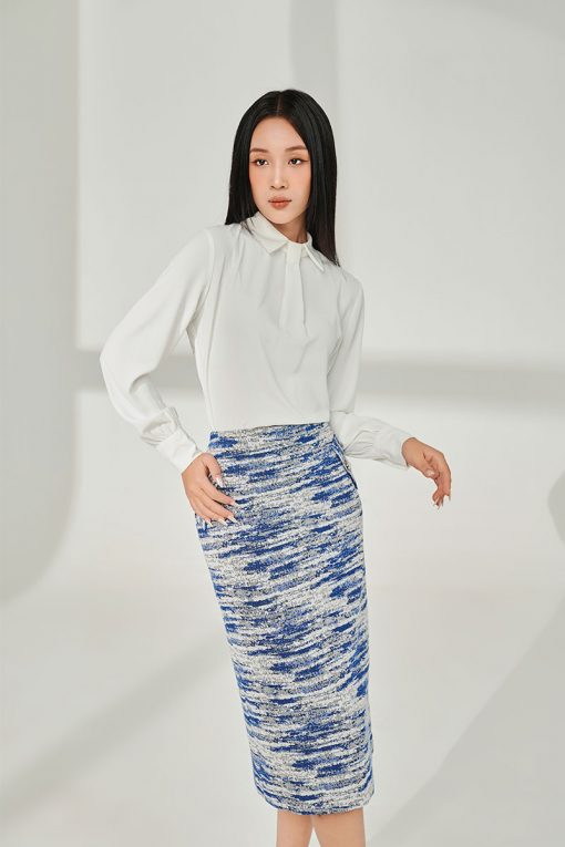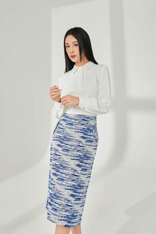 Chân váy tweed A xẻ lệch