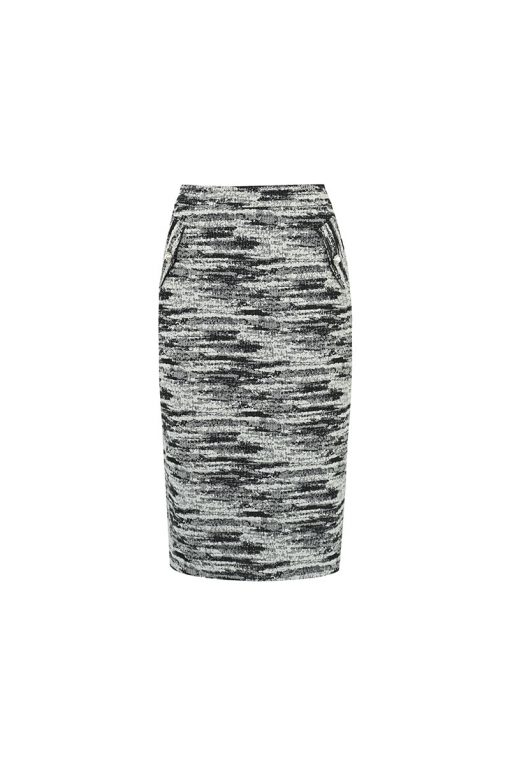 Chân váy A tweed nắp túi giả