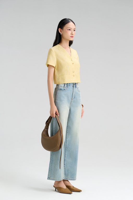 - Vải denim cao cấp, mềm mịn, có độ co giãn nhẹ, thoáng khí, mặc cả ngày vẫn thấy dễ chịu.