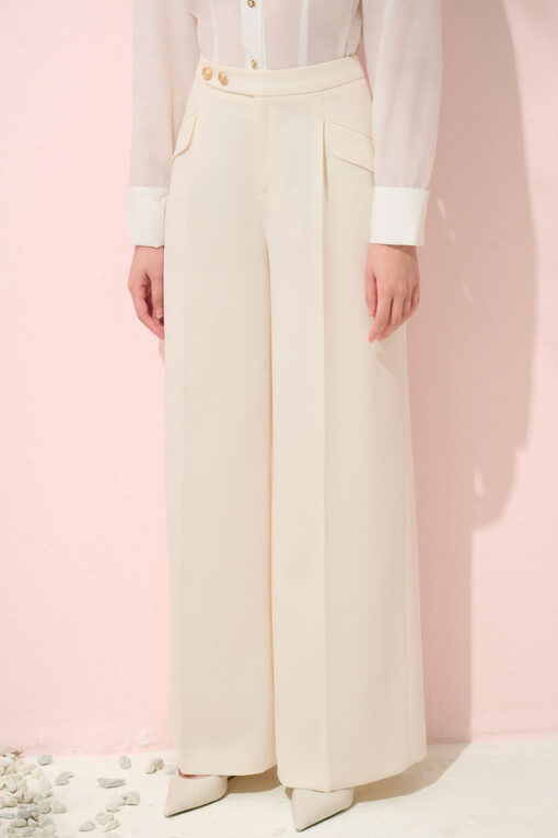 Quần suông gấu lơ vê đỉa đôi đính cúc