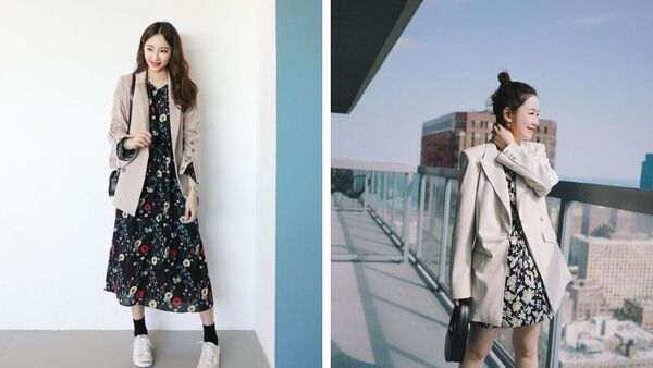 Mix váy hoa phối cùng blazer