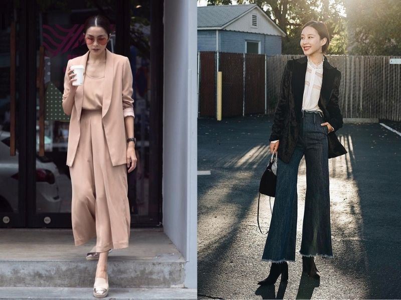 Quần ống rộng phối đồ với blazer