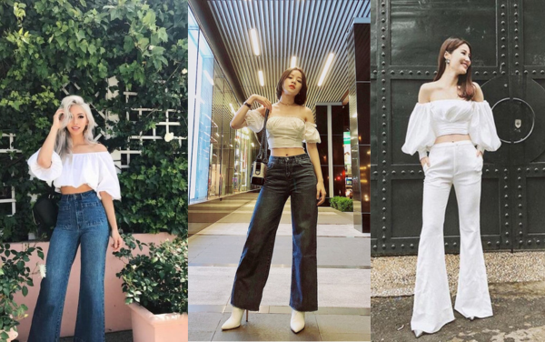 Sự kết hợp giữa nét dịu dàng của áo trễ vai và sự phá cách của quần ống loe tạo nên một phong cách thời trang độc đáo. Áo trễ vai giúp khoe bờ vai trần gợi cảm, còn quần ống loe tạo hiệu ứng chân dài miên man đáng kể.