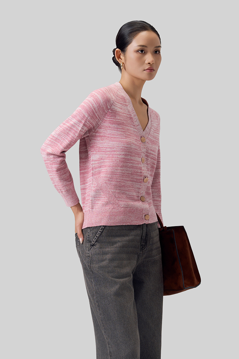 Áo khoác len tay raglan cổ V 5 cúc