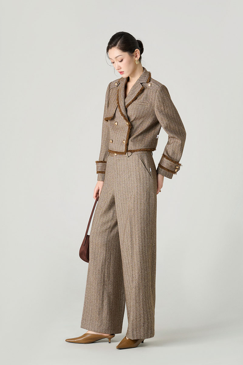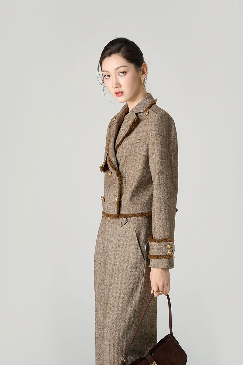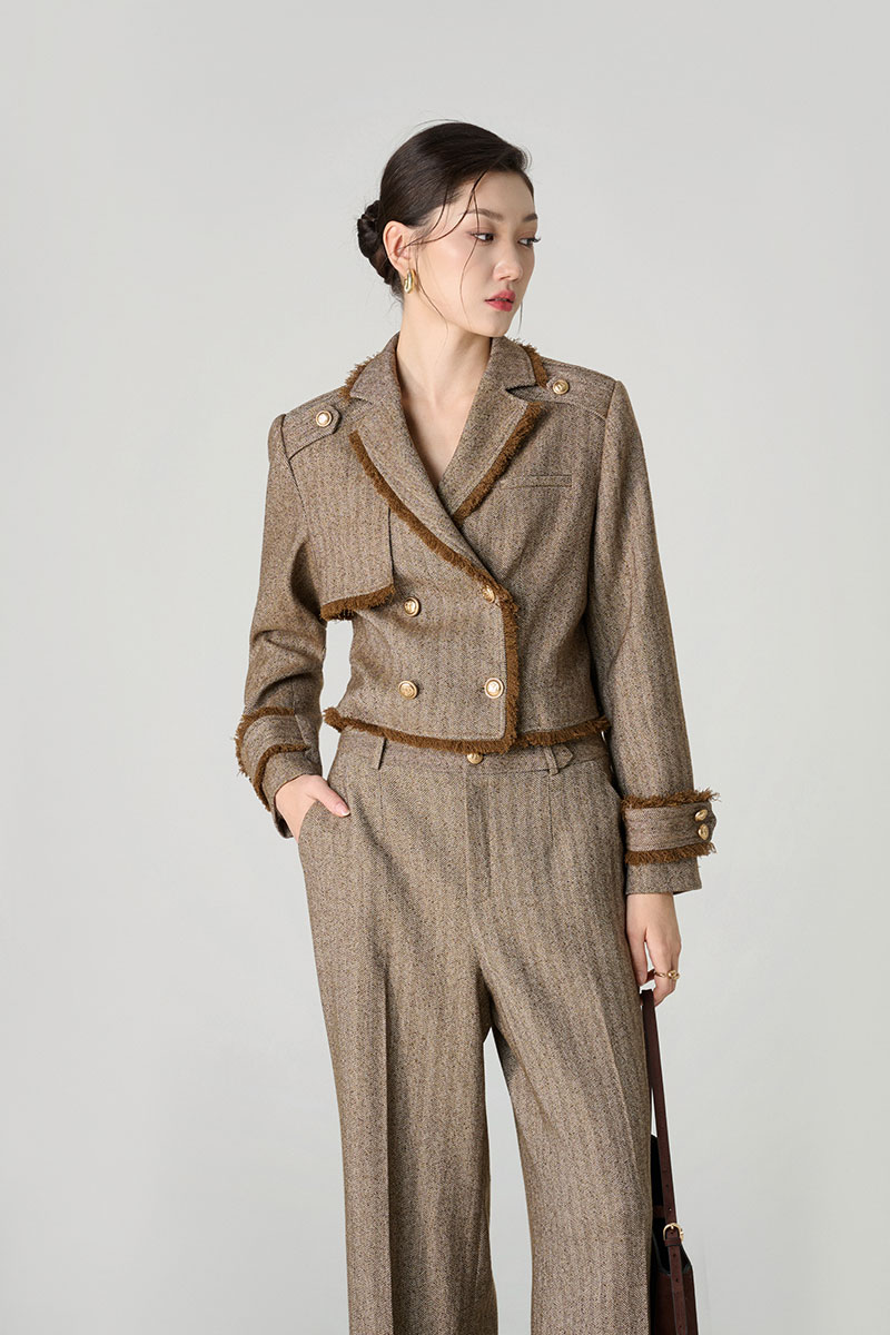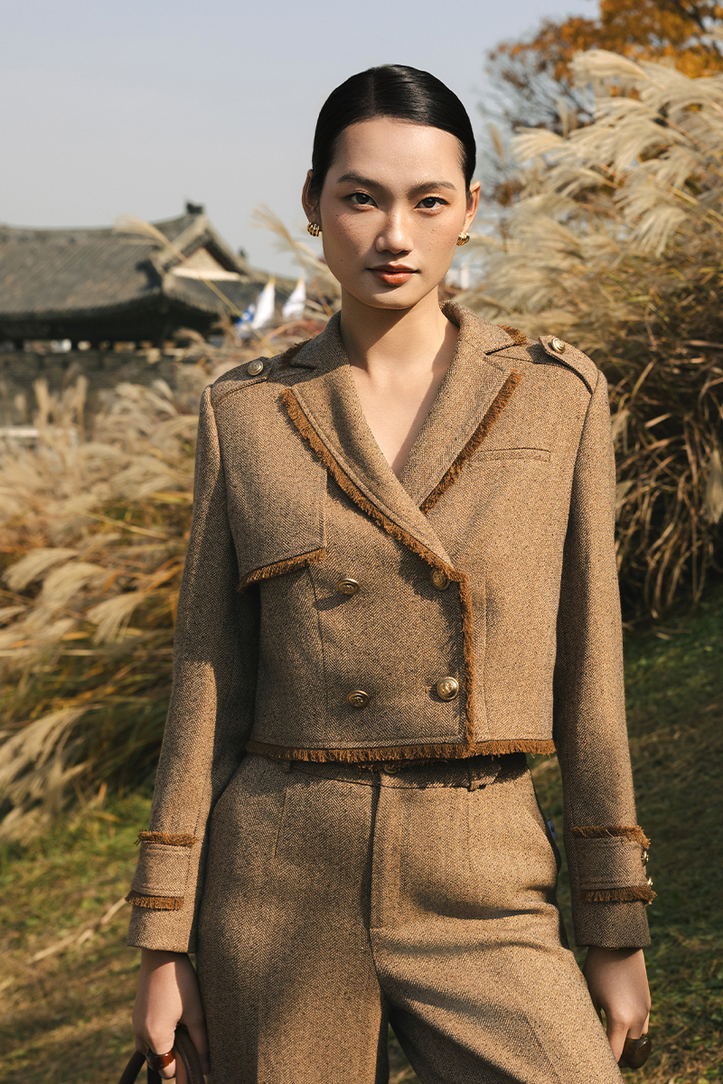 Áo khoác tweed cá vai, rút tua