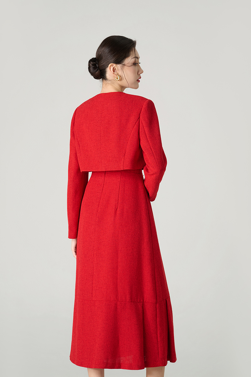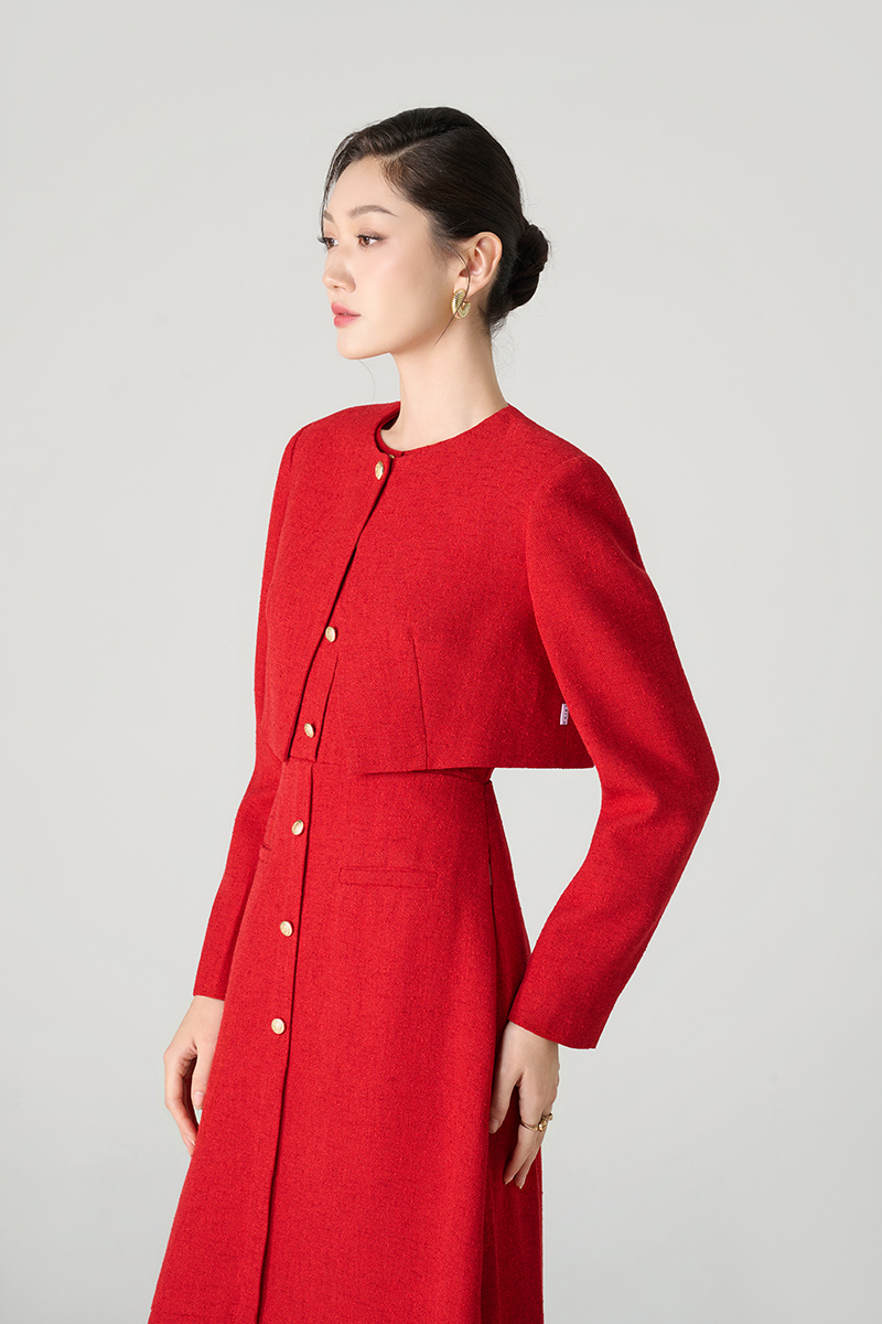 Áo khoác tweed lửng, cổ cài cúc
