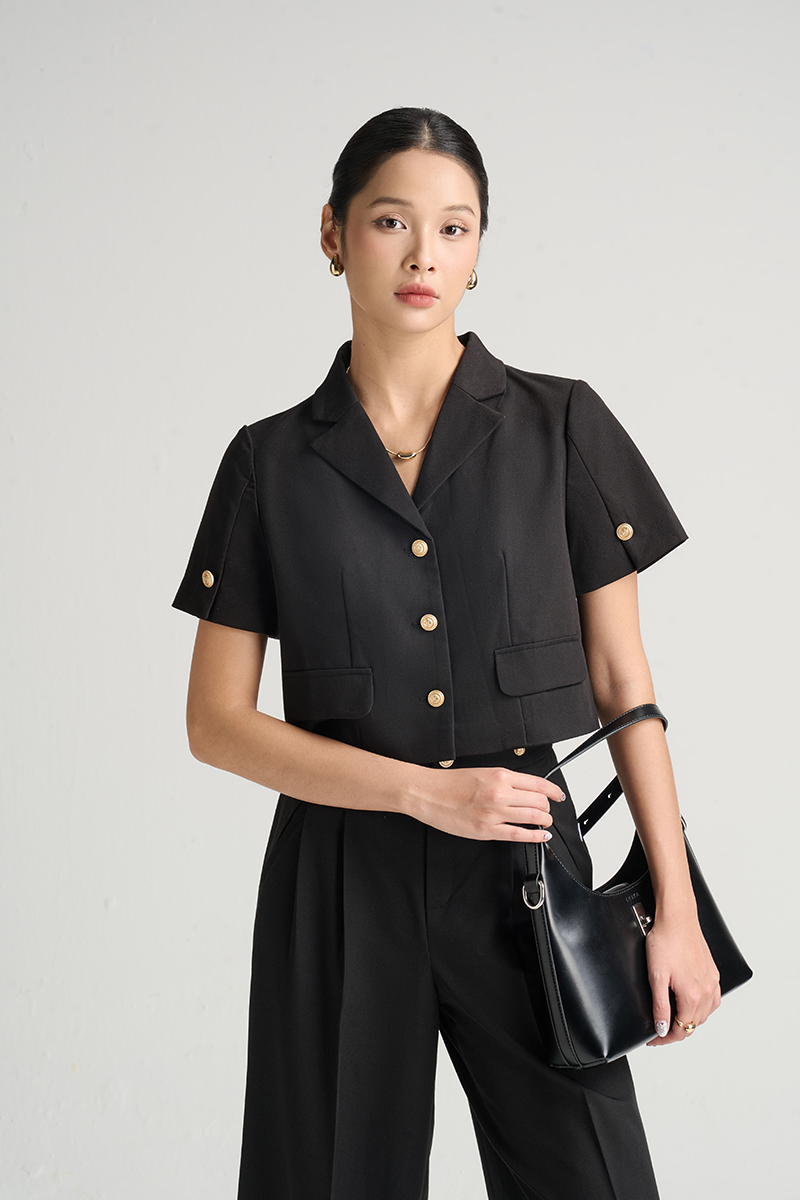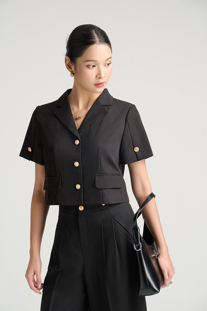 Áo kiểu CT croptop xẻ tay đính cúc
