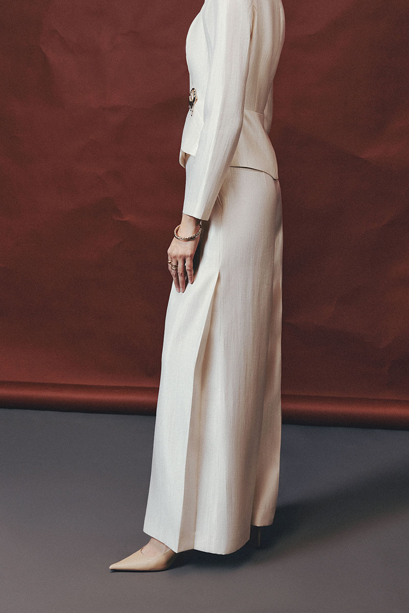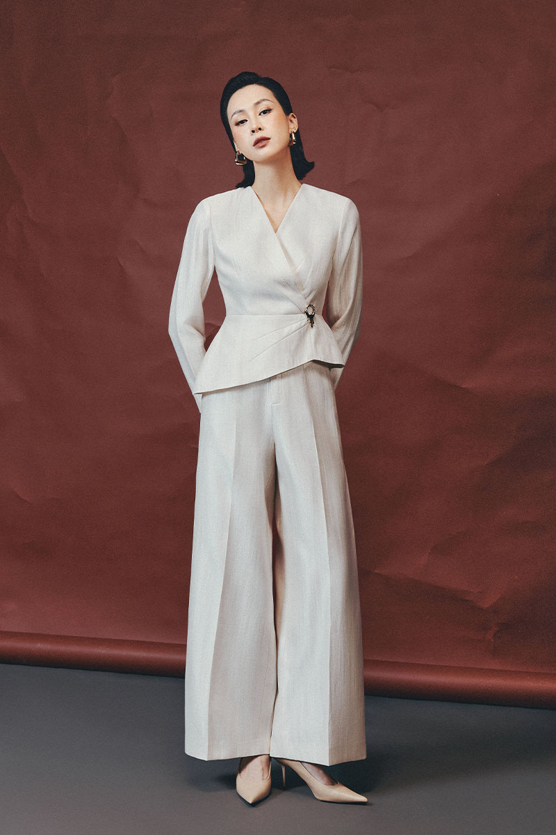 Áo kiểu peplum lệch cổ V xếp ly eo