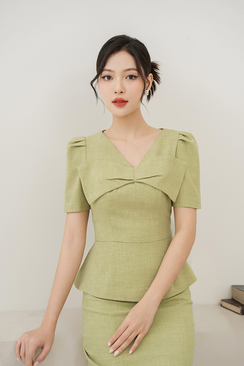 Áo kiểu peplum nơ ngực