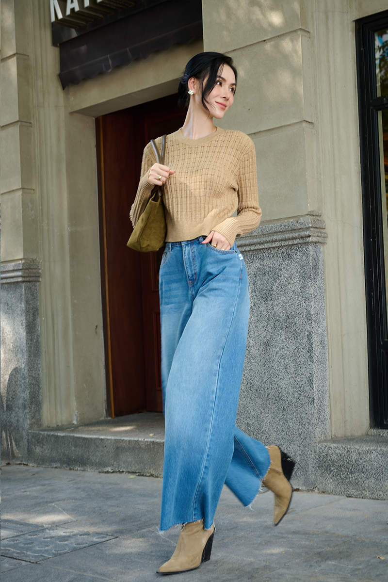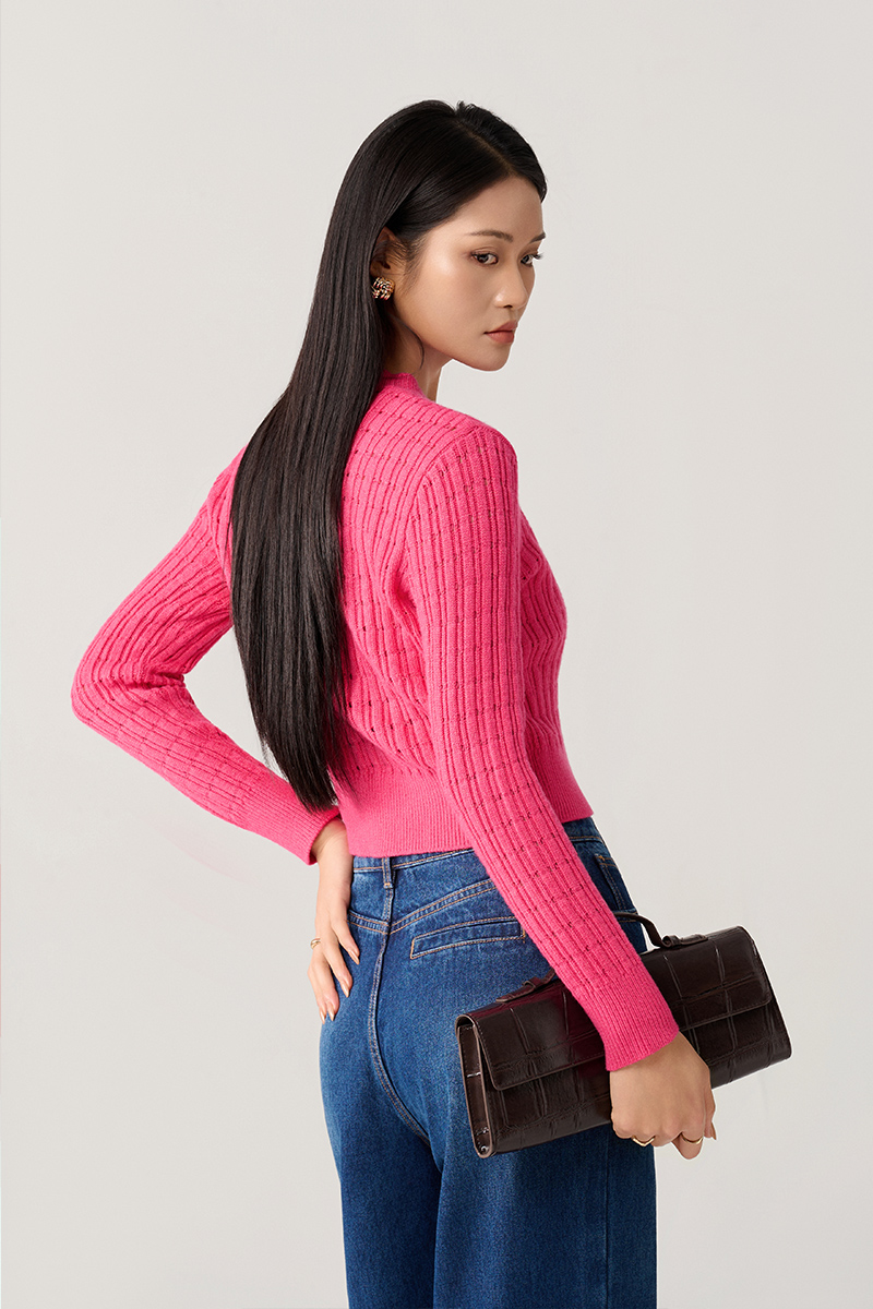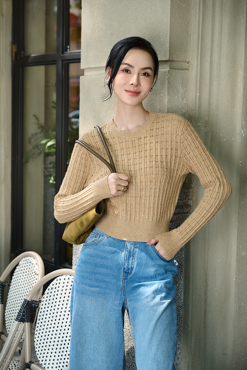 Áo Len DT cổ tròn dệt sọc chấm lỗ