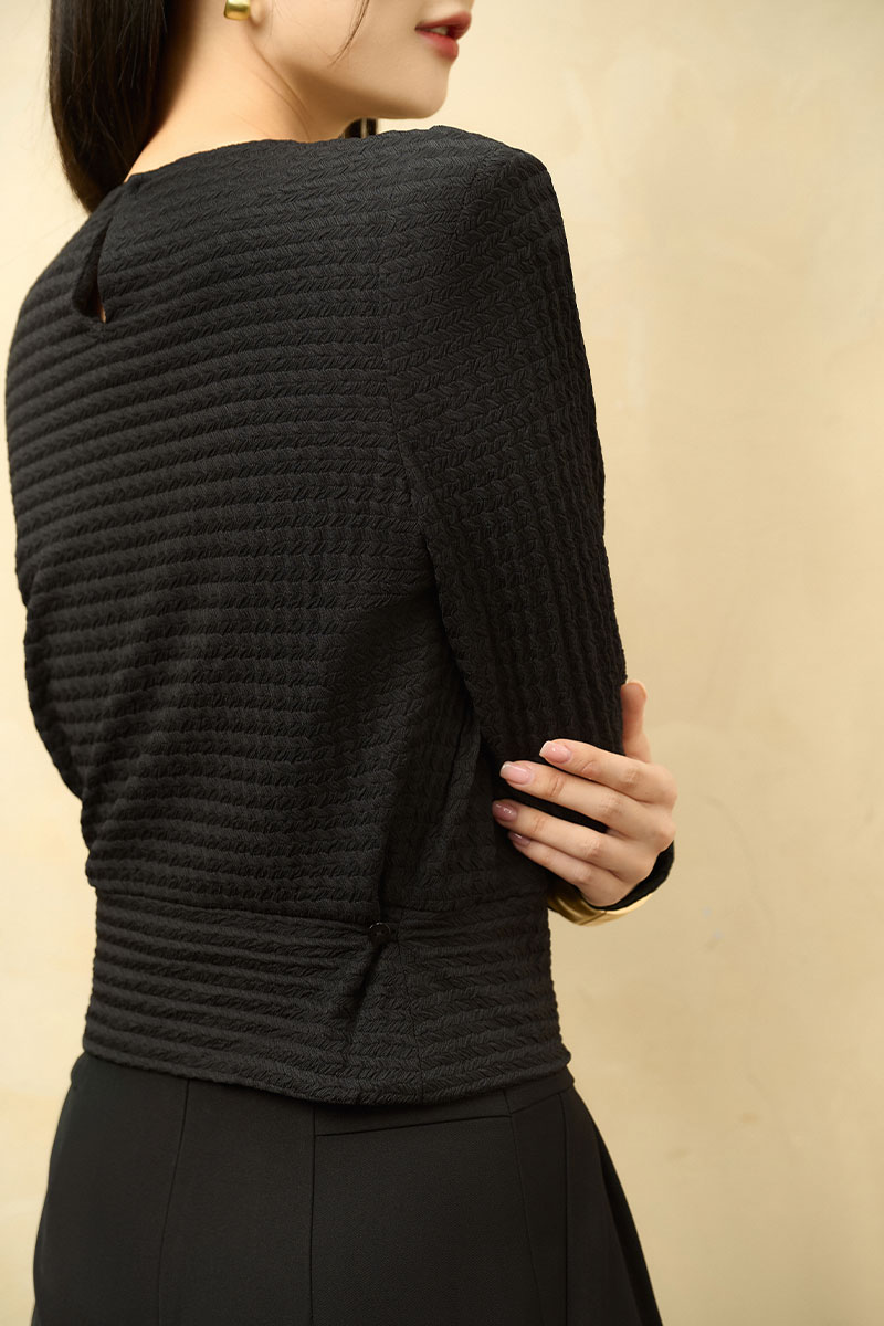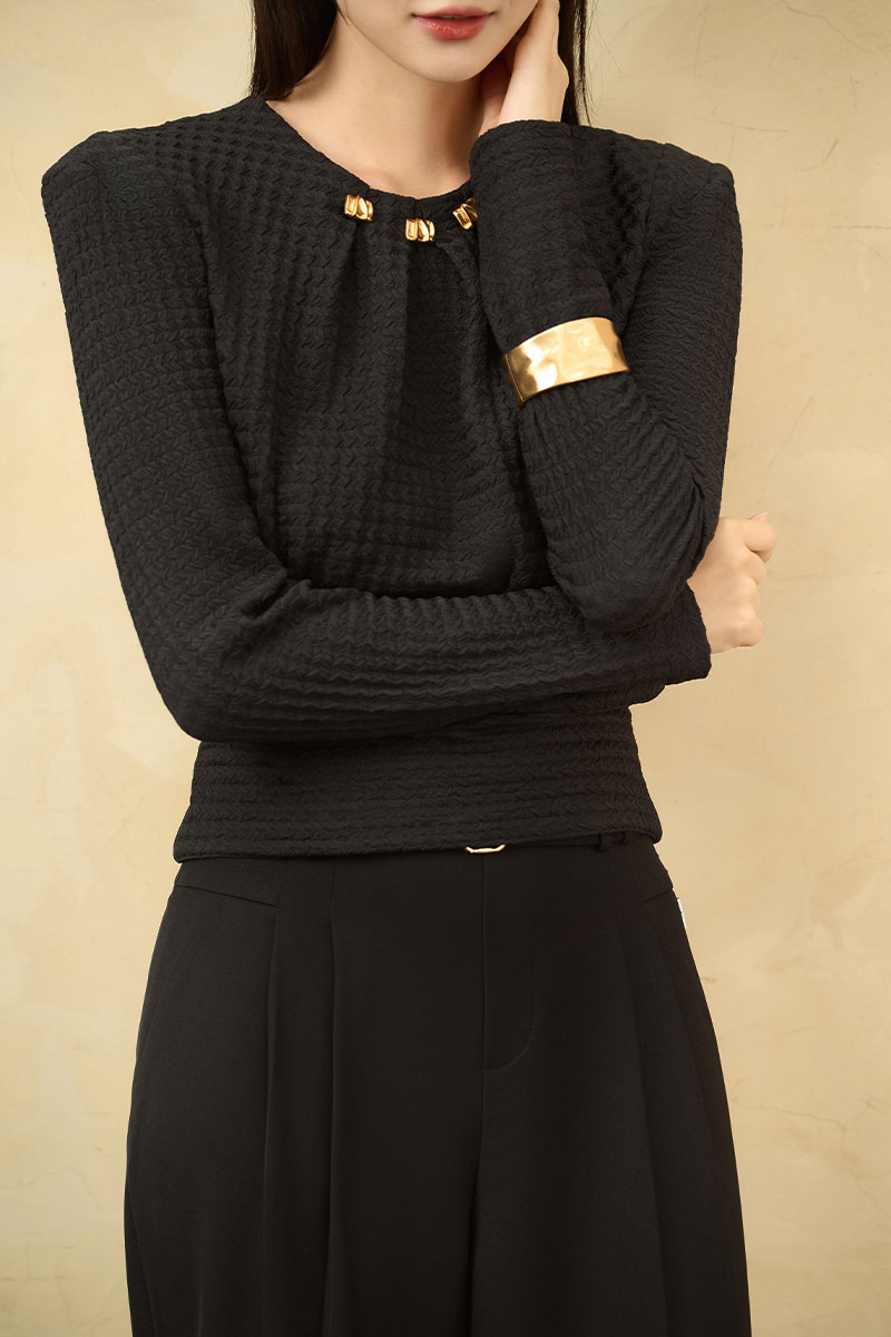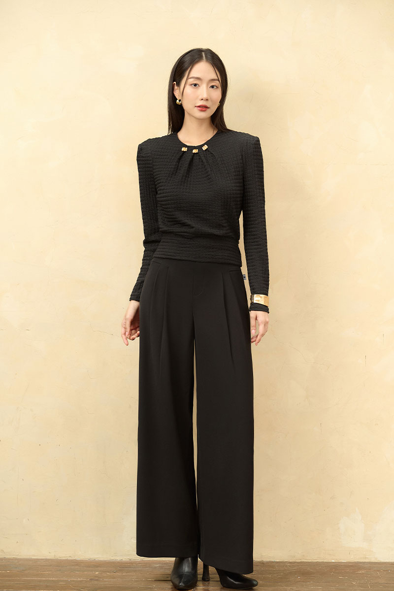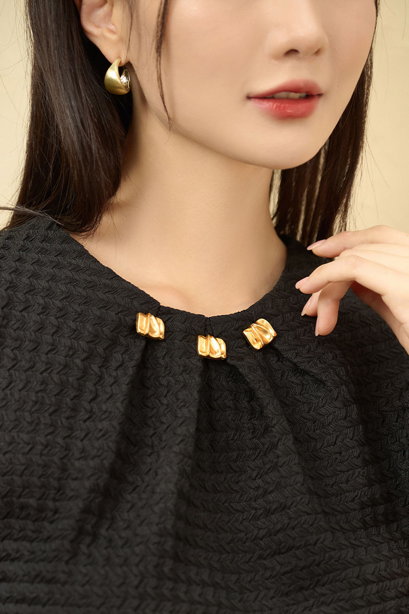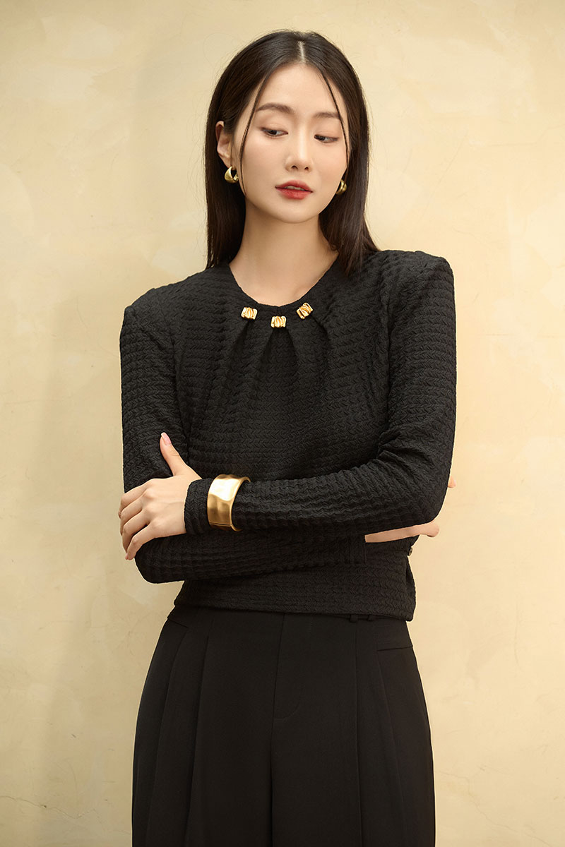 Áo thun kiểu DT xếp ly cổ đính cúc