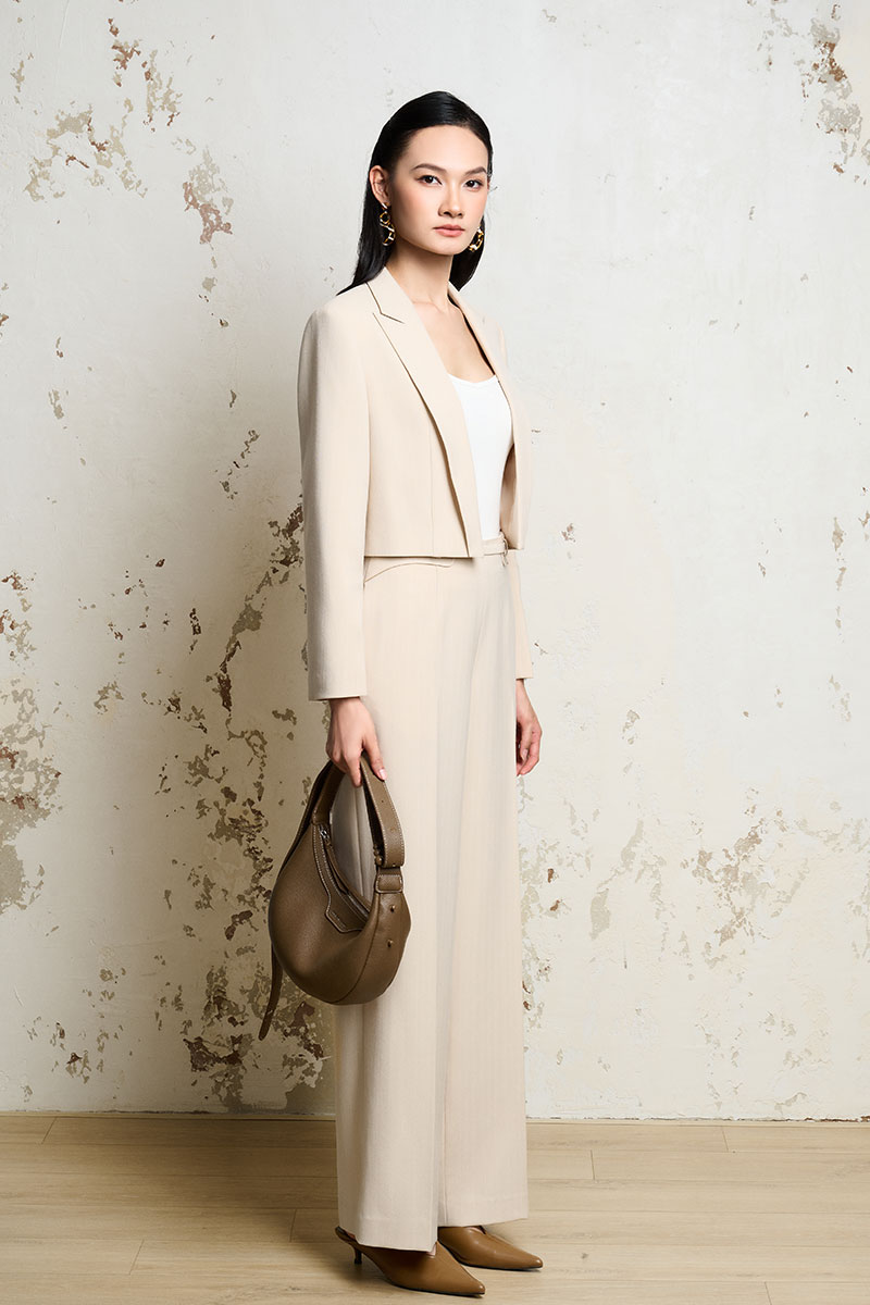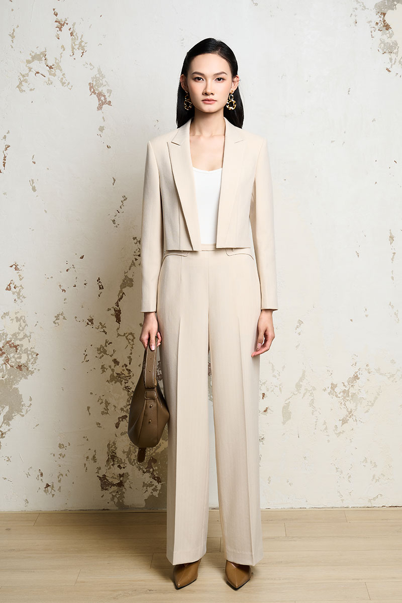Áo vest croptop cổ bẻ liền nẹp