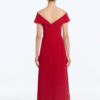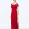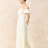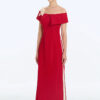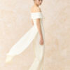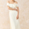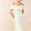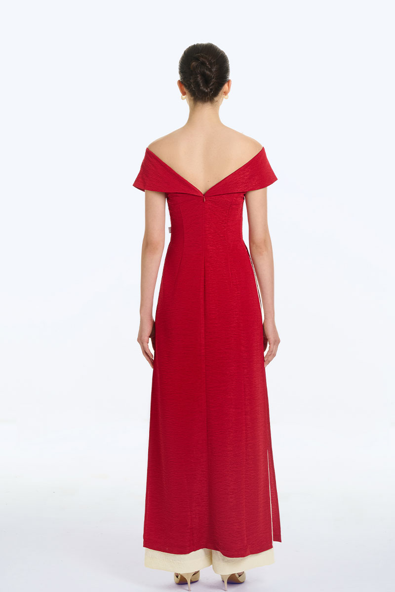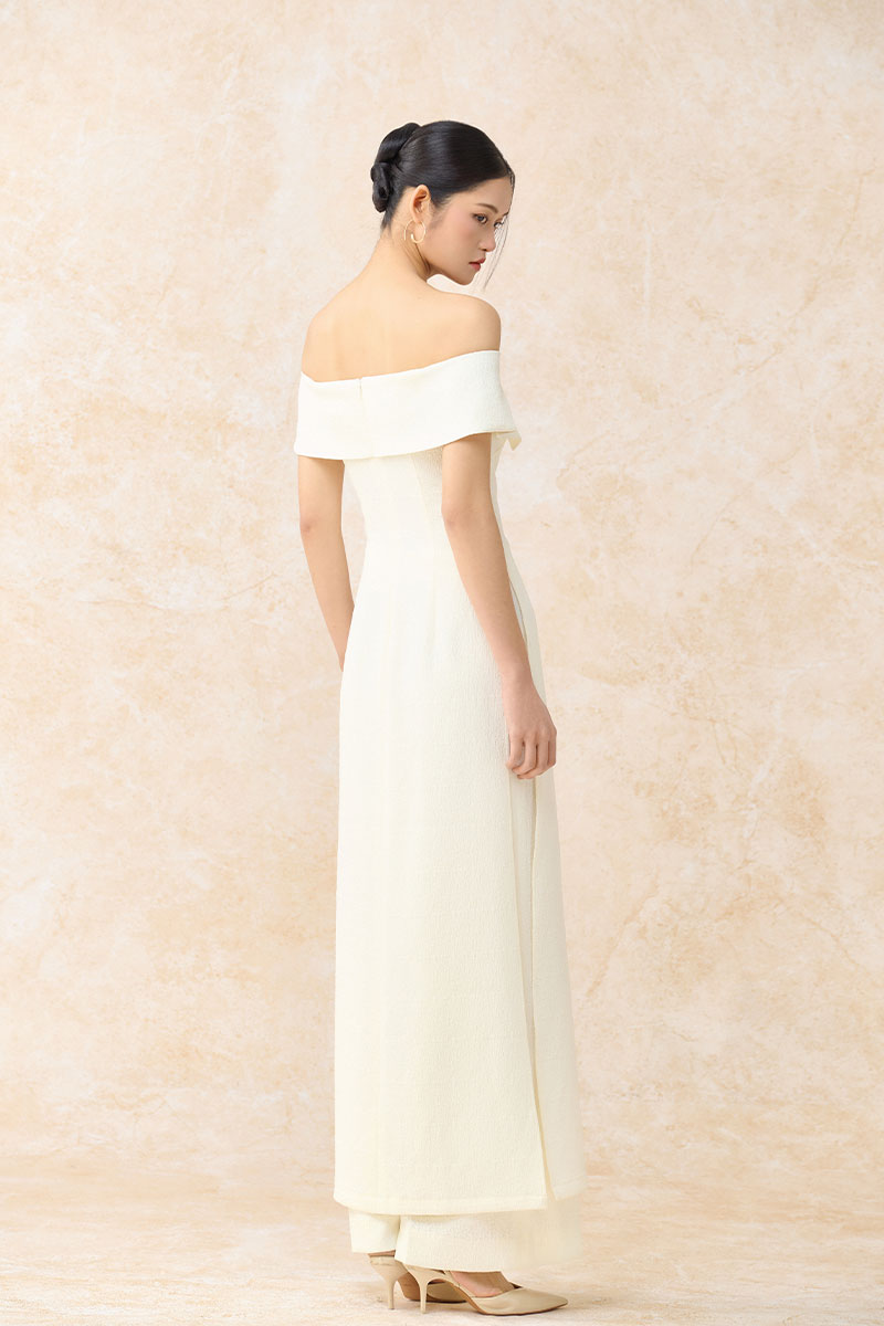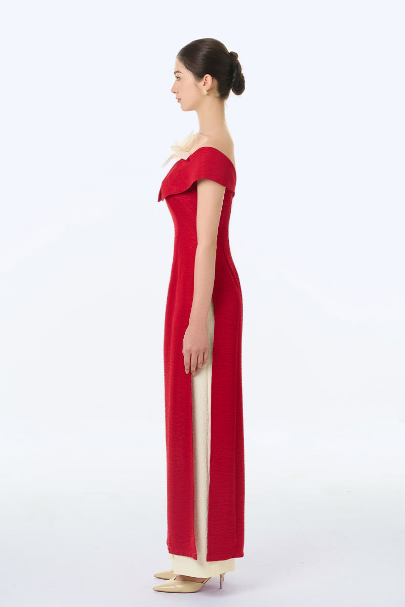 Bộ áo dài cách tân trễ vai ngực cài hoa