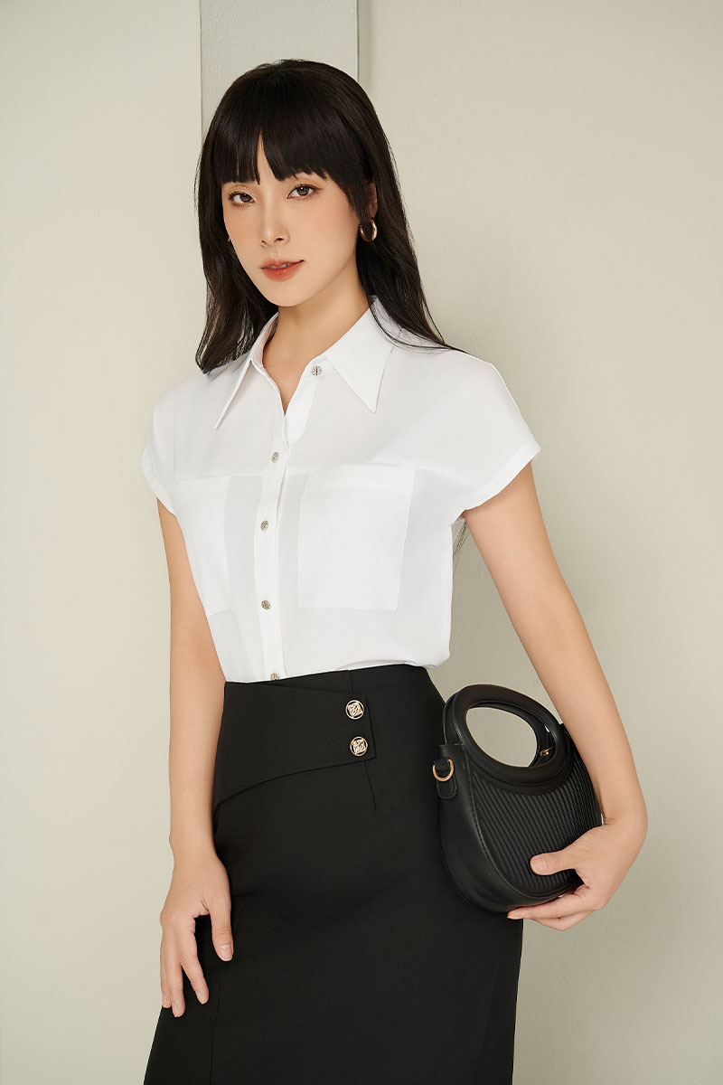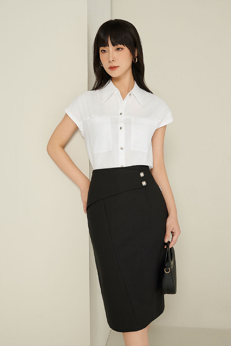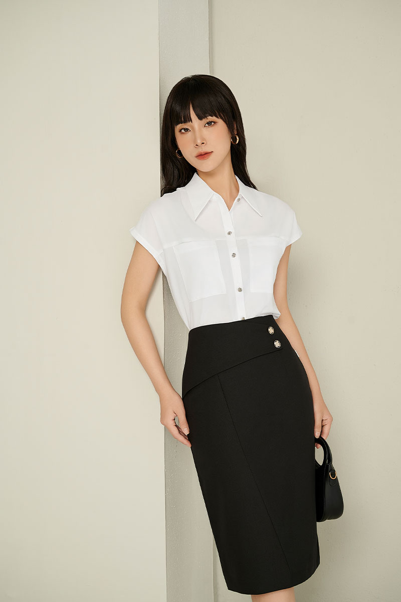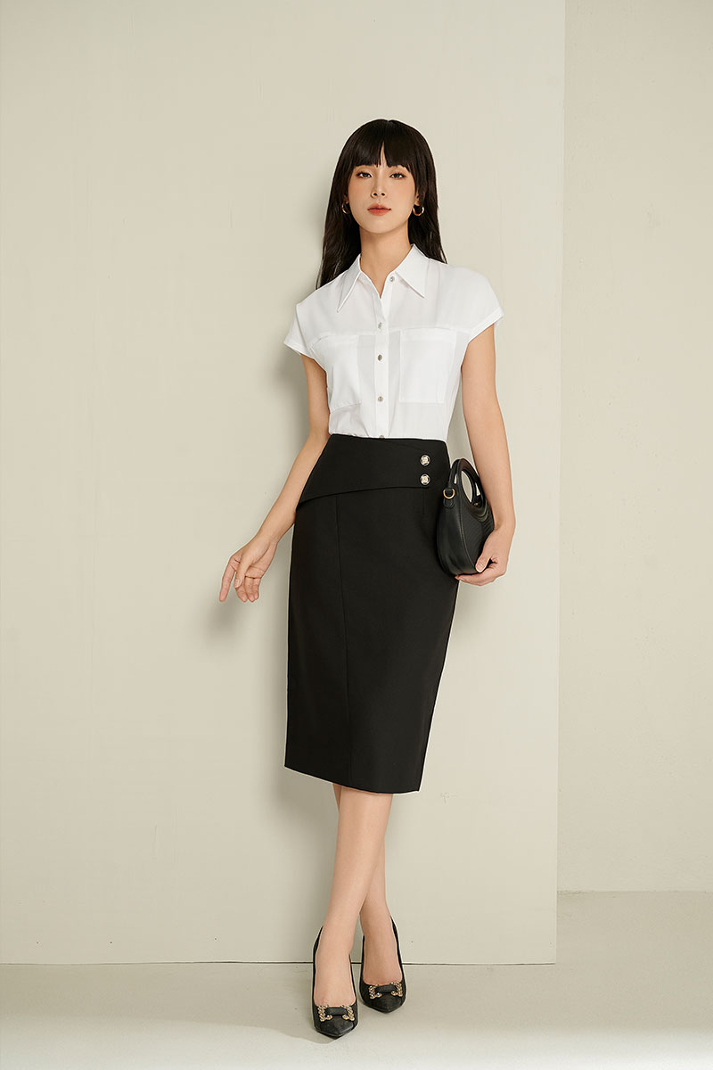 Chân váy bút chì bổ can chéo đáp cạp
