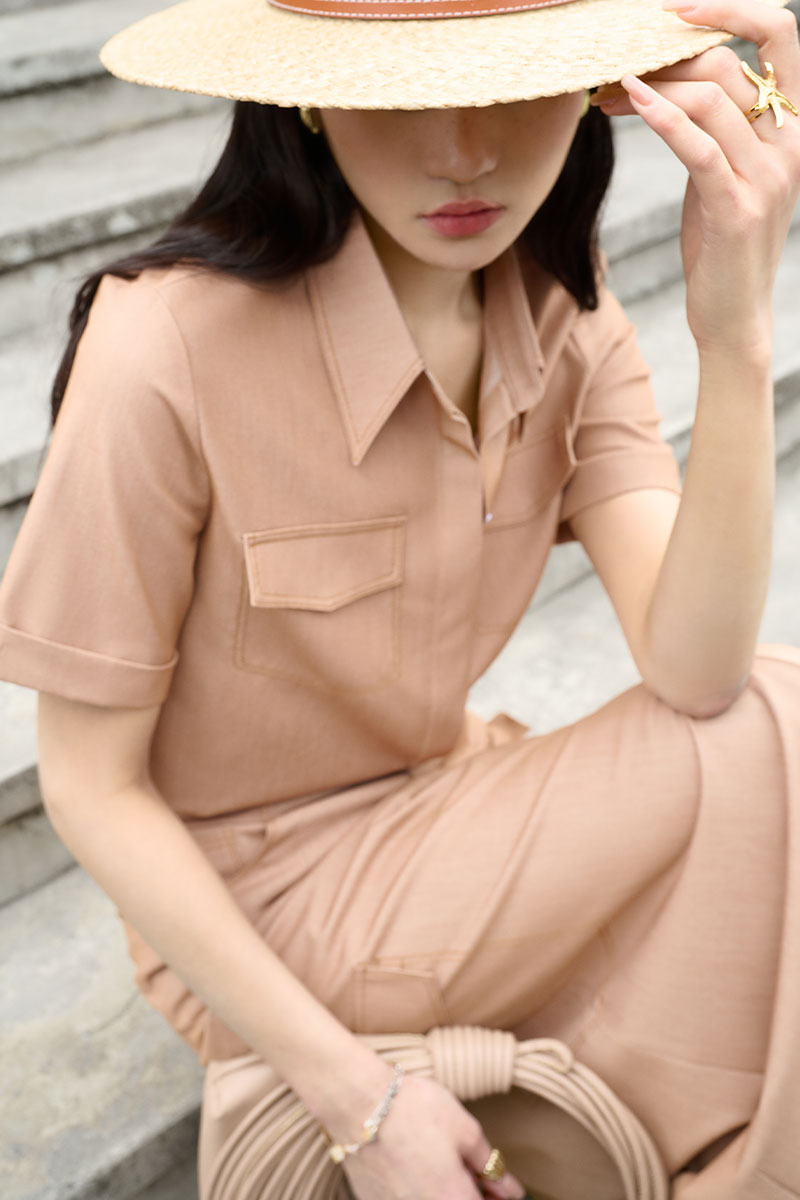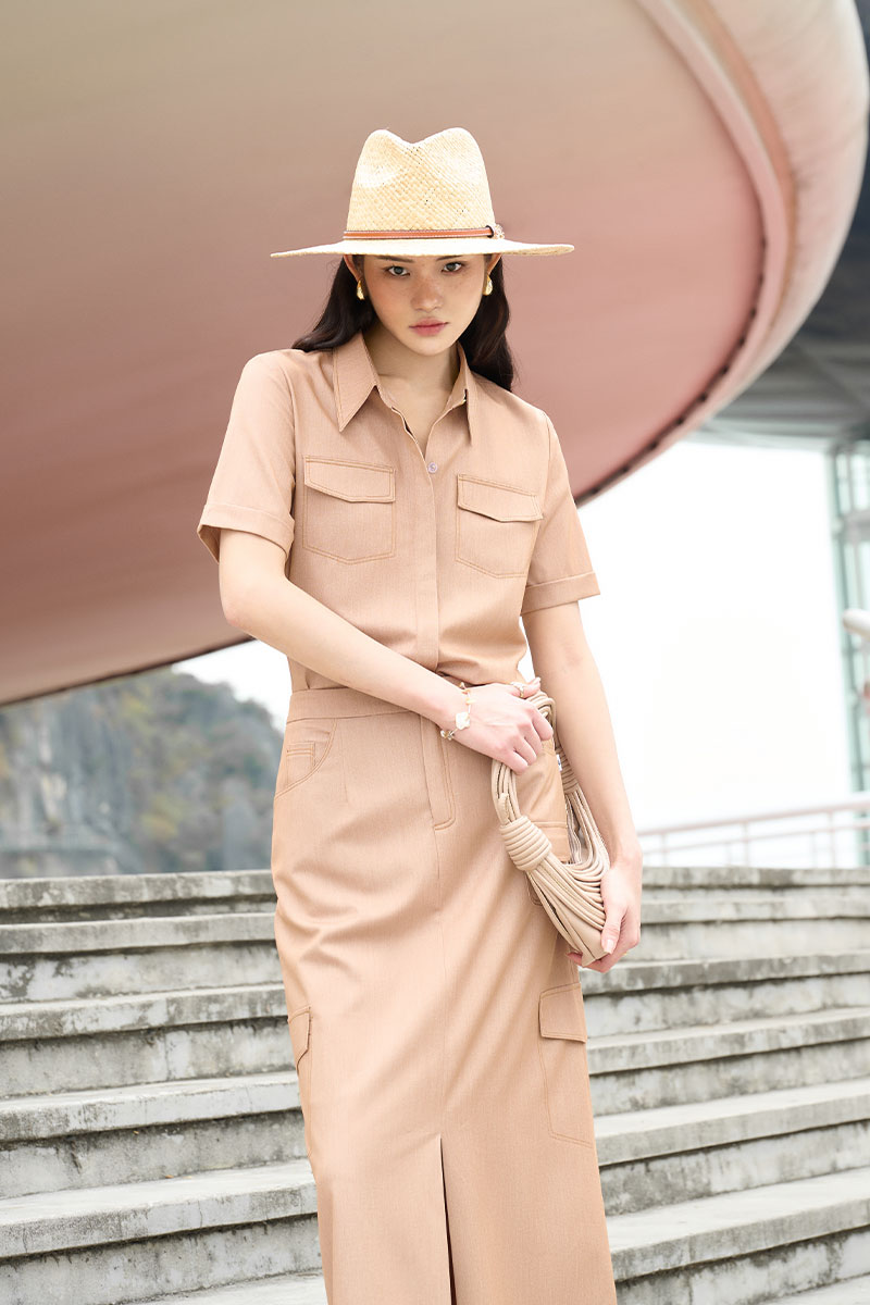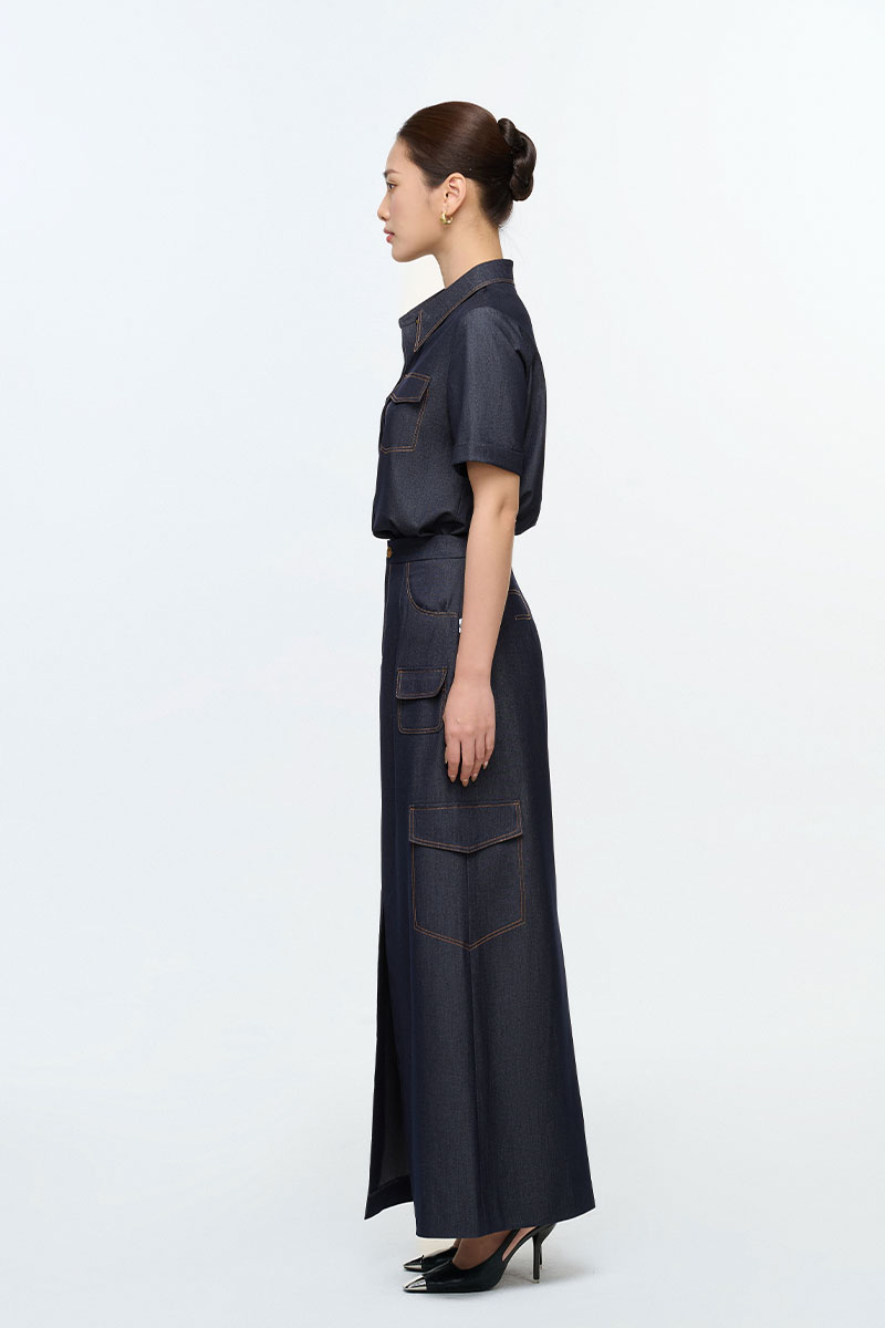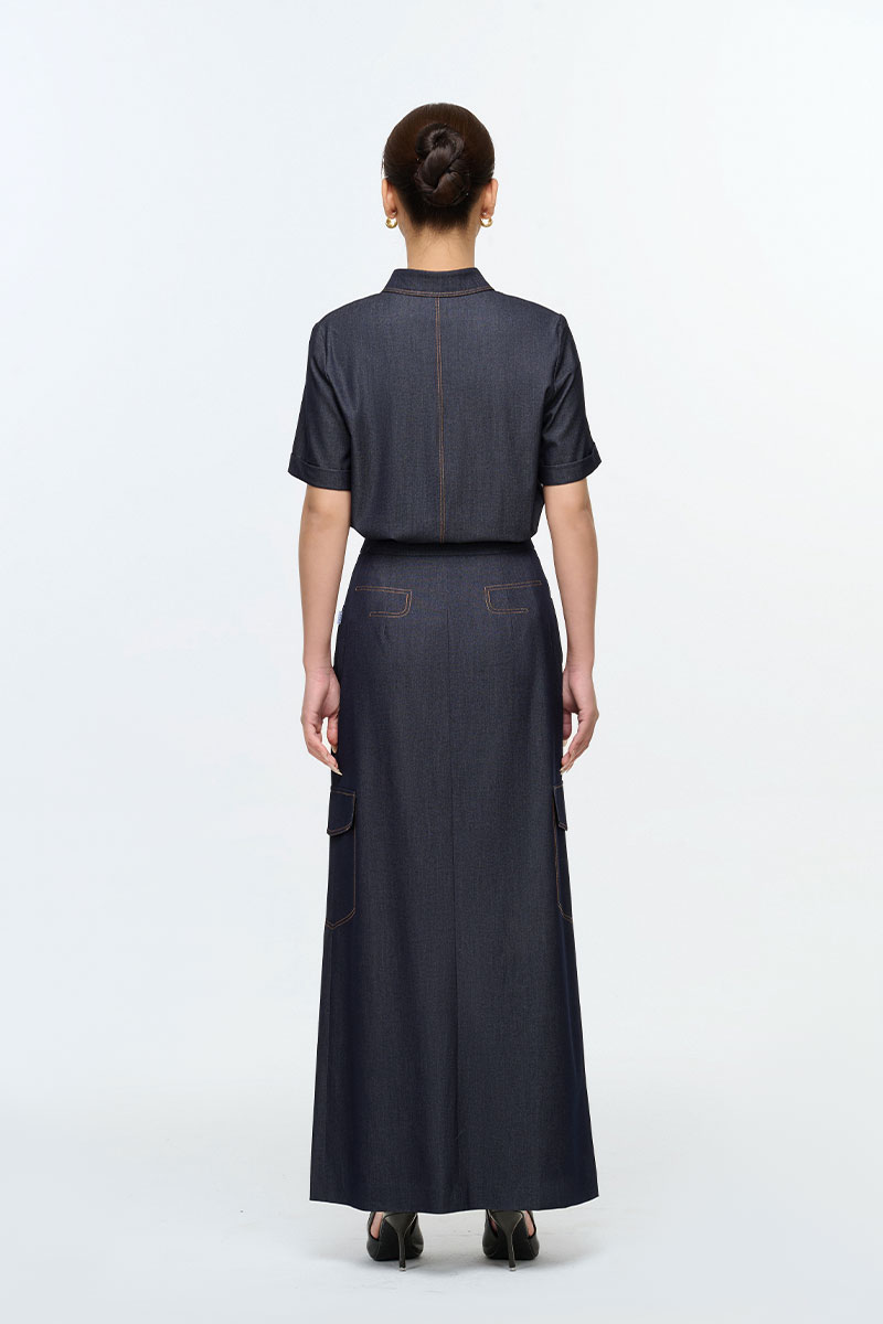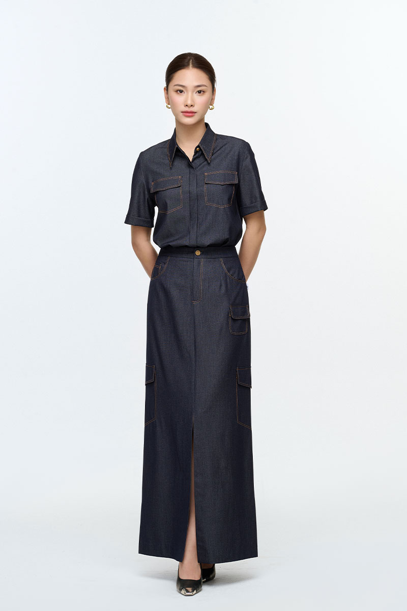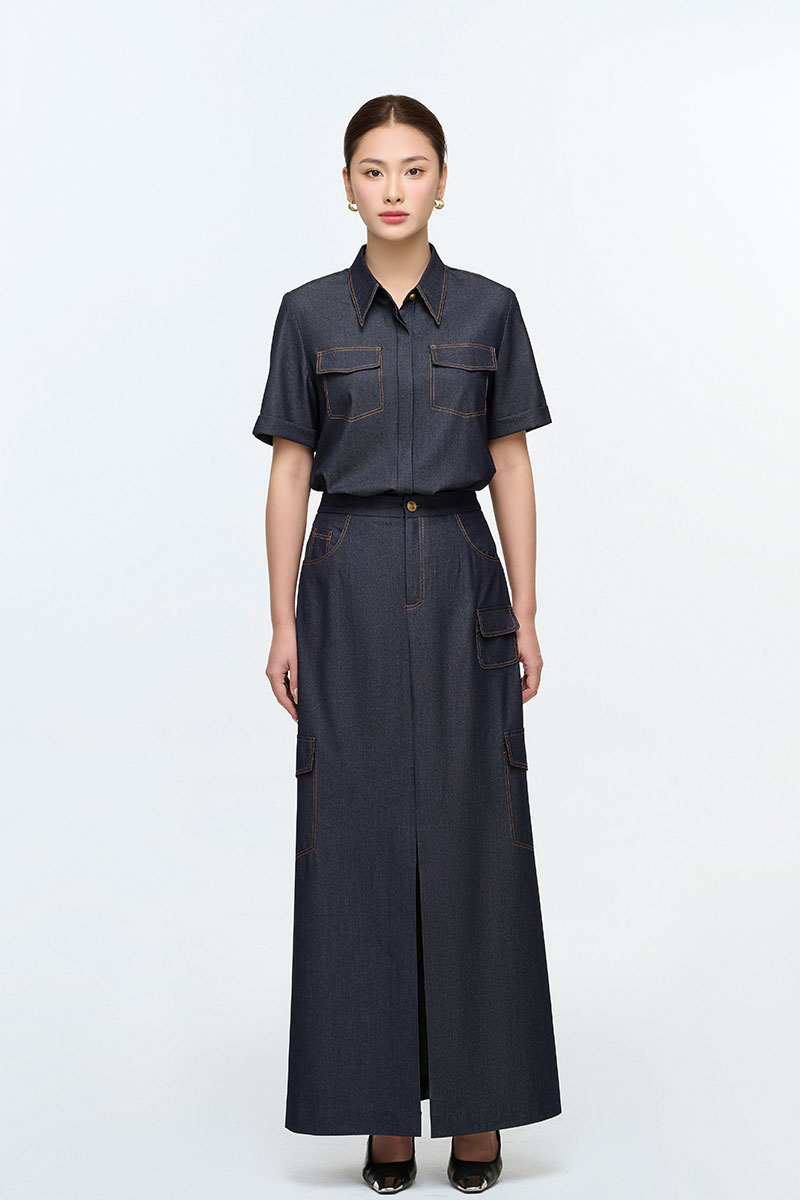 Chân váy dài chần chỉ giả túi ốp