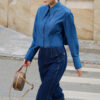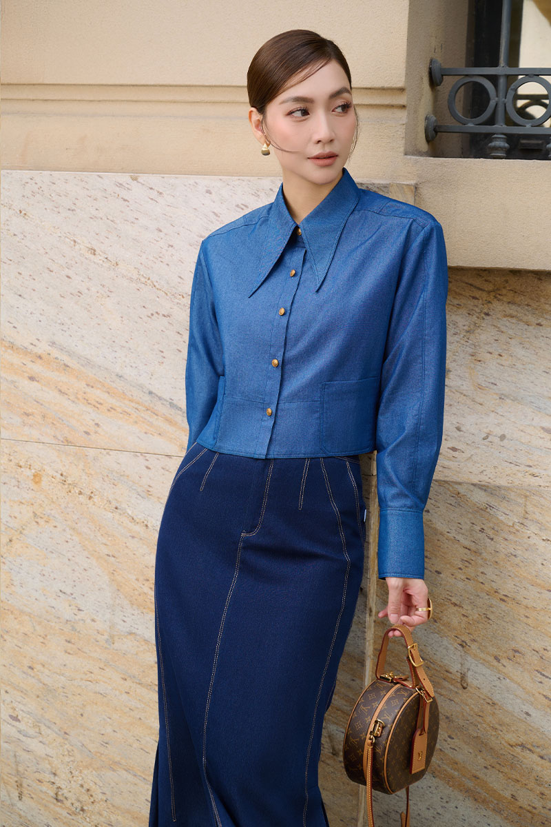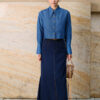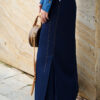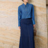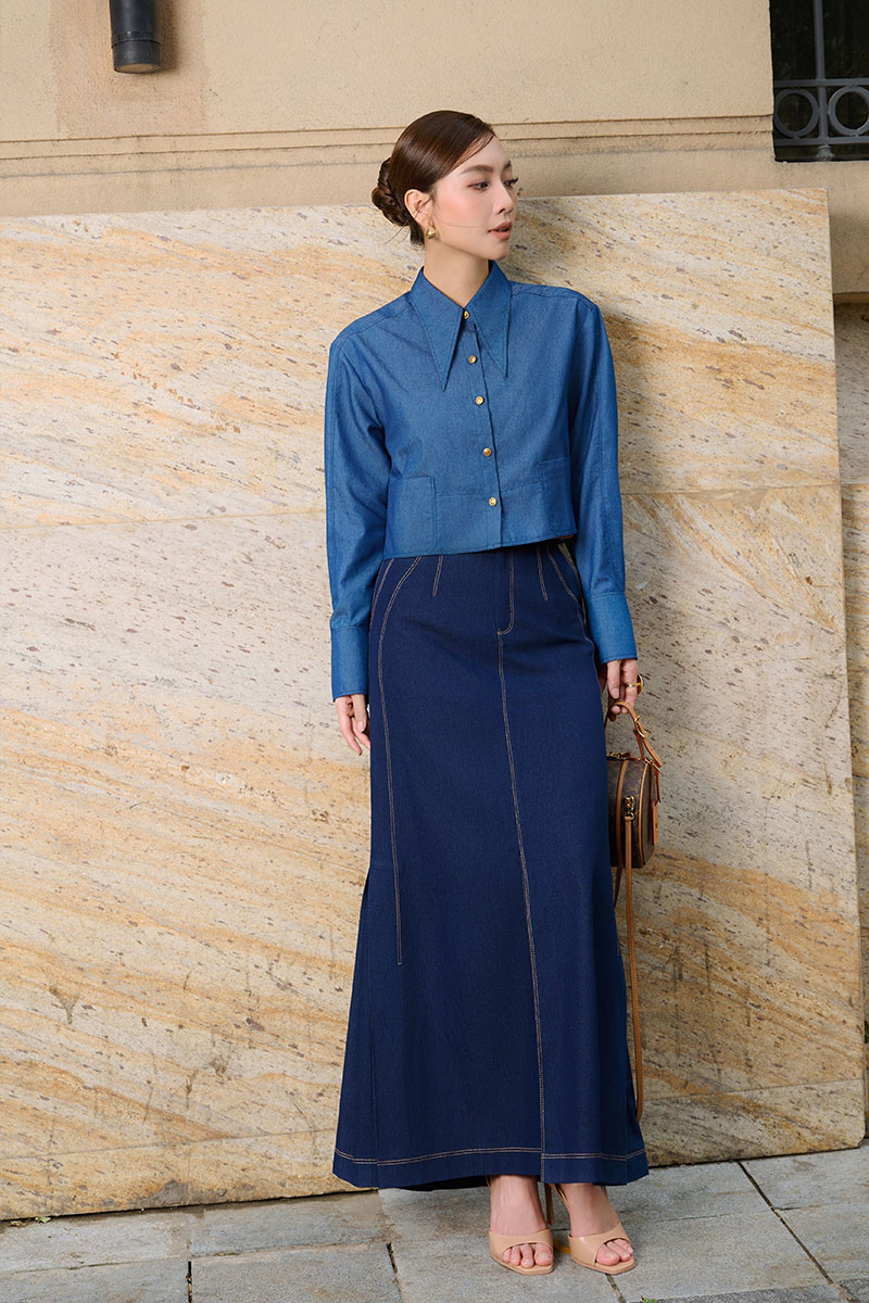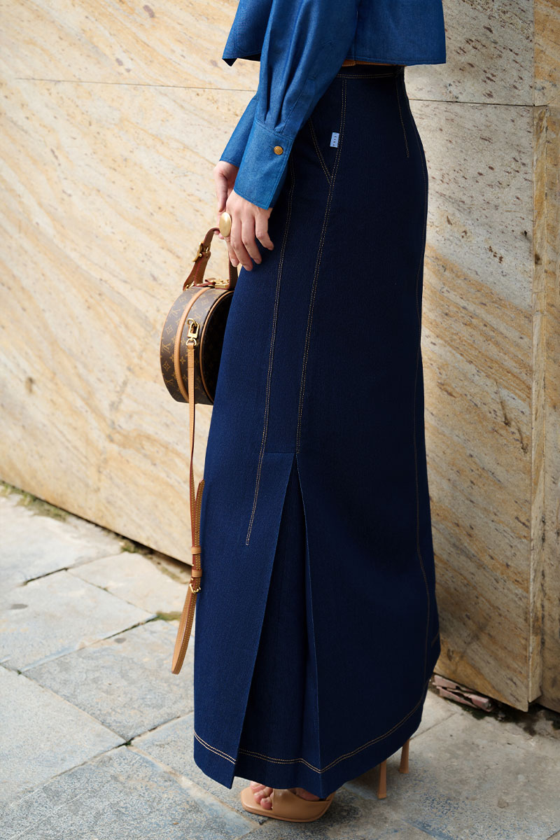 Chân váy dài giả bò chần chỉ sườn gấu xếp ly