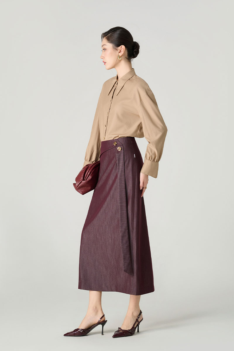 Chân váy dài bong eo thả dây đính cúc