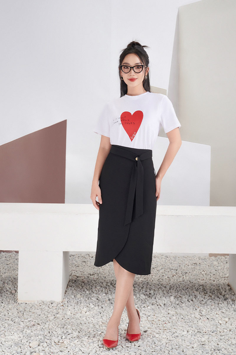 Chân váy suông vạt cong kẹp đai lệch