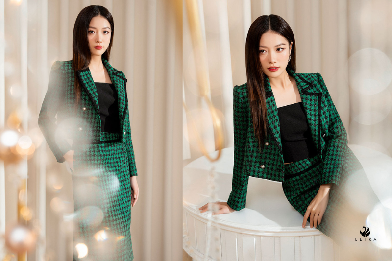 Dễ mix phụ kiện, nâng tầm outfit, vải tweed ấm áp, thanh lịch, mặc lên tự tin đi gặp gỡ.