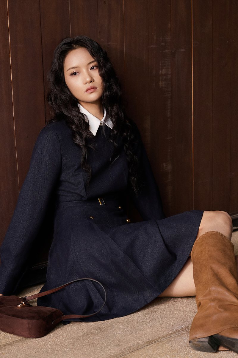 Đầm A DT xếp ly sườn kèm đai