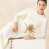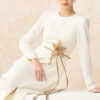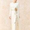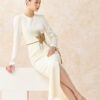 Đầm A dài cổ tròn xẻ gấu trước