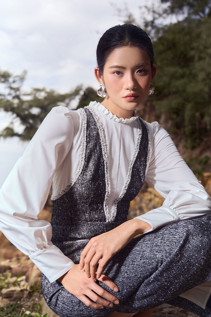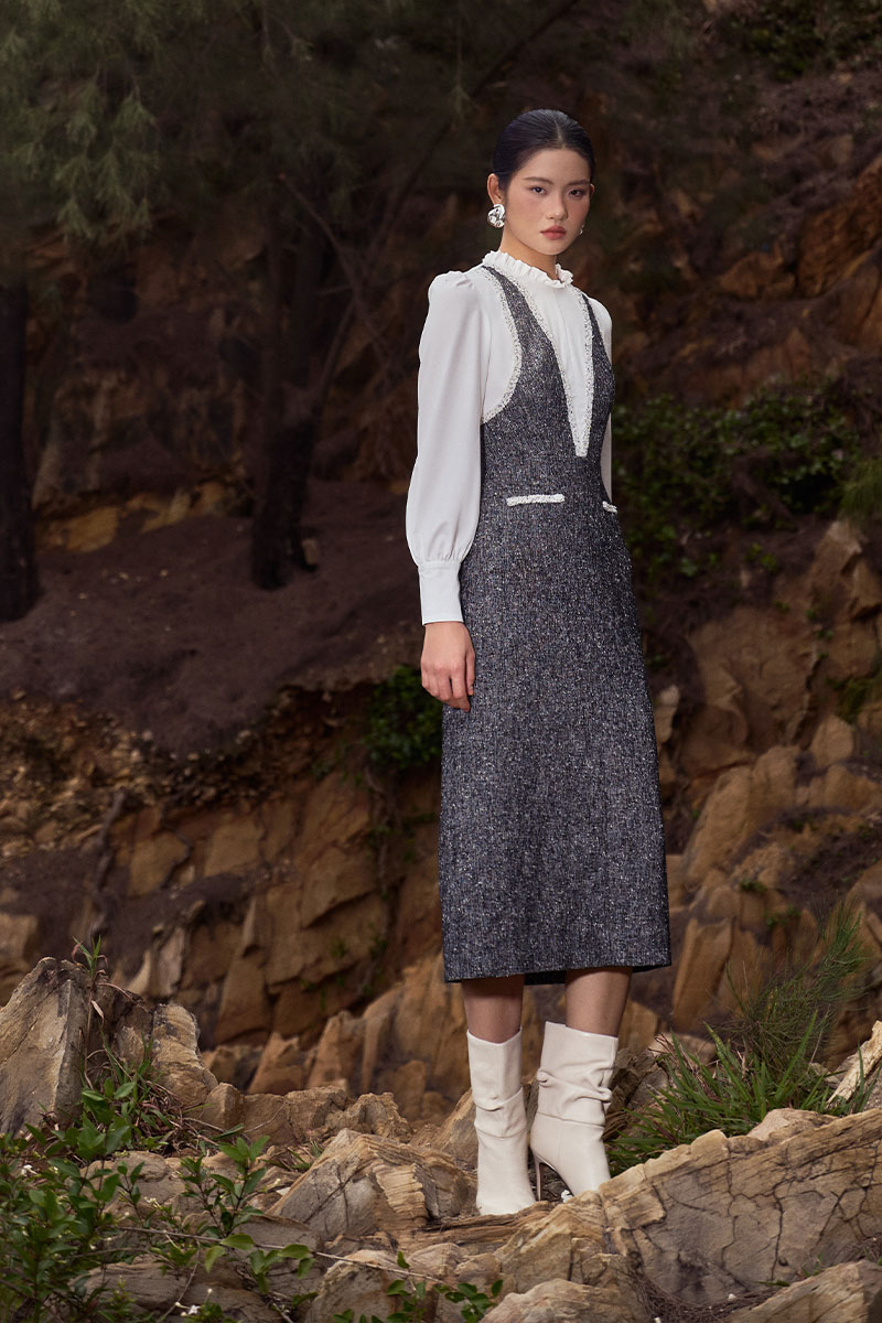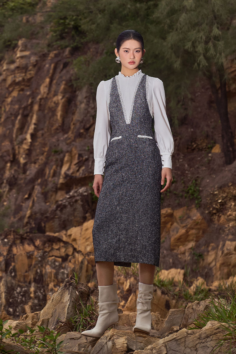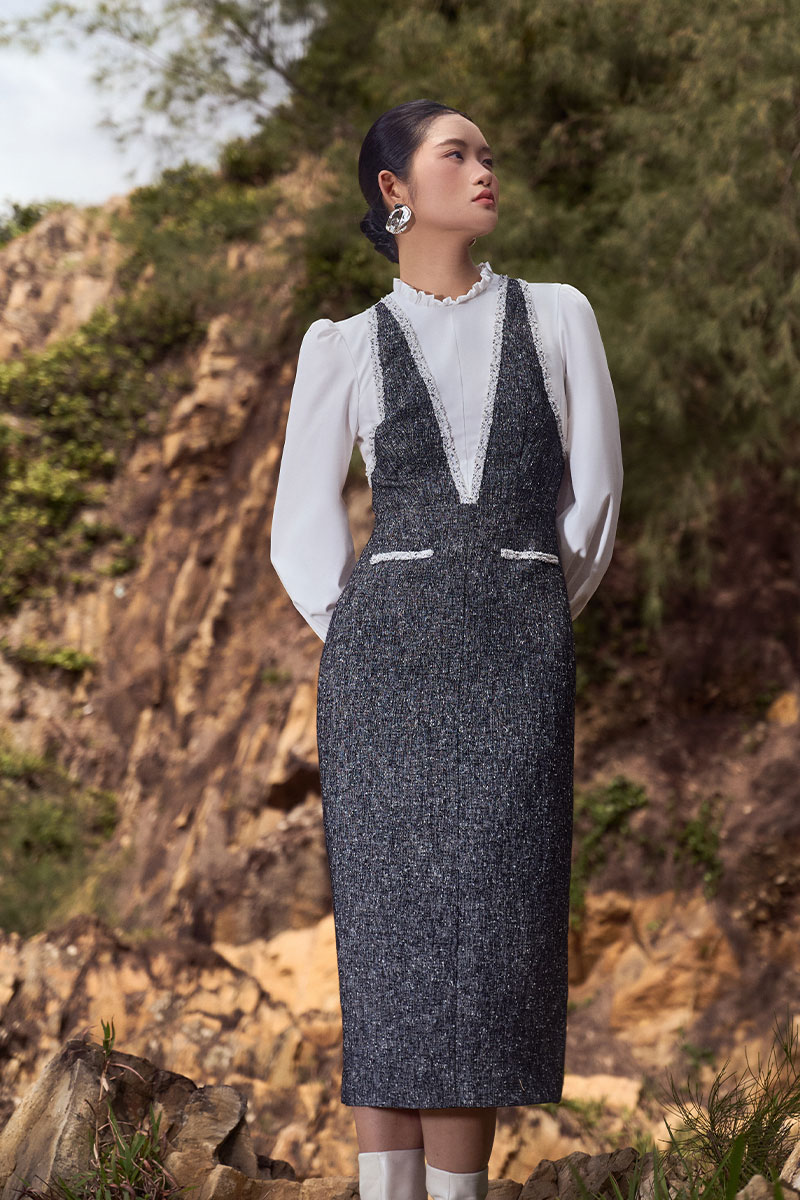 Đầm ôm tweed phối thân kẹp dây
