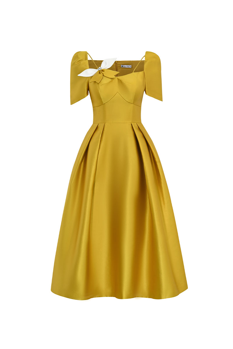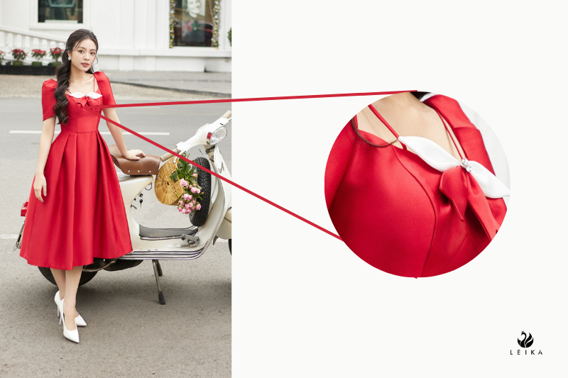 Đầm party tay bồng cài nơ phối