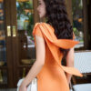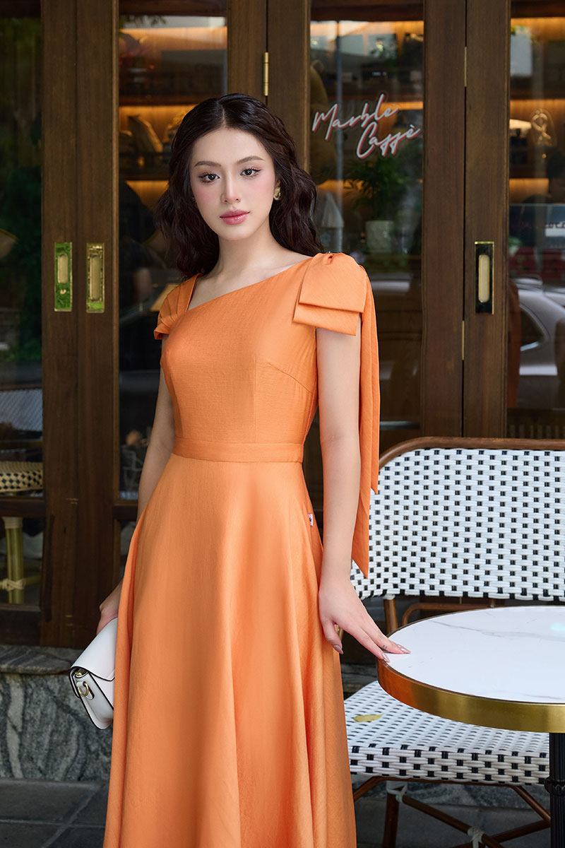Đầm xoè cổ chéo nơ lệch đính cúc