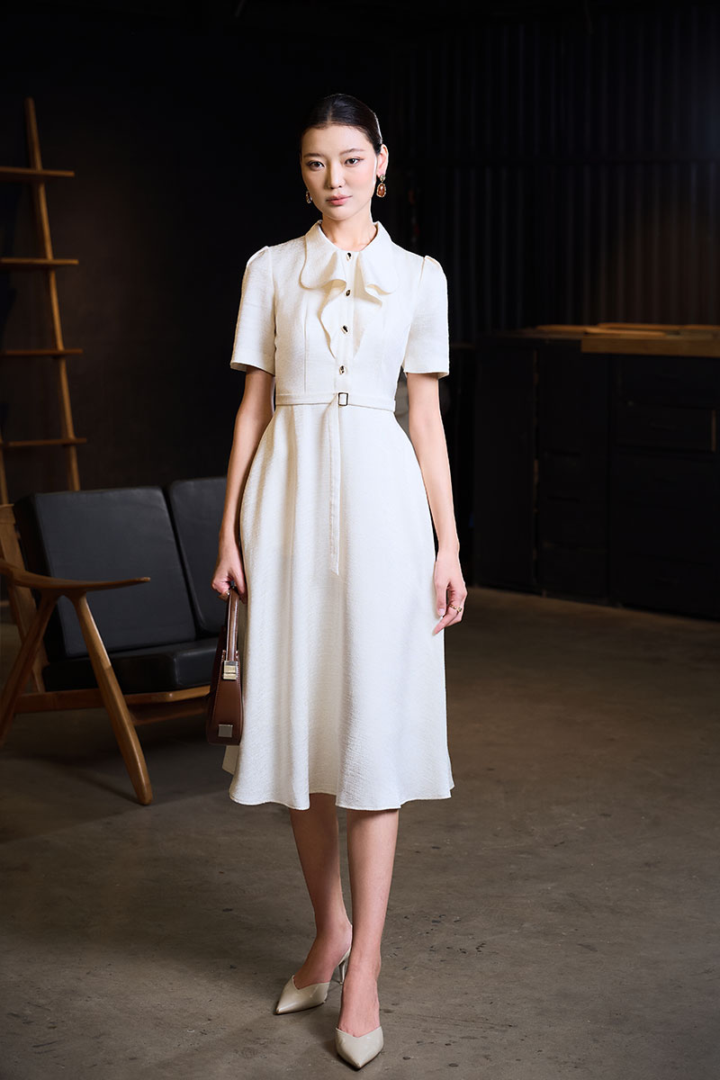 Đầm xoè cổ kẹp bèo nẹp đai eo