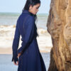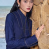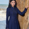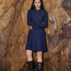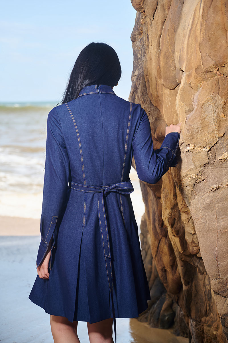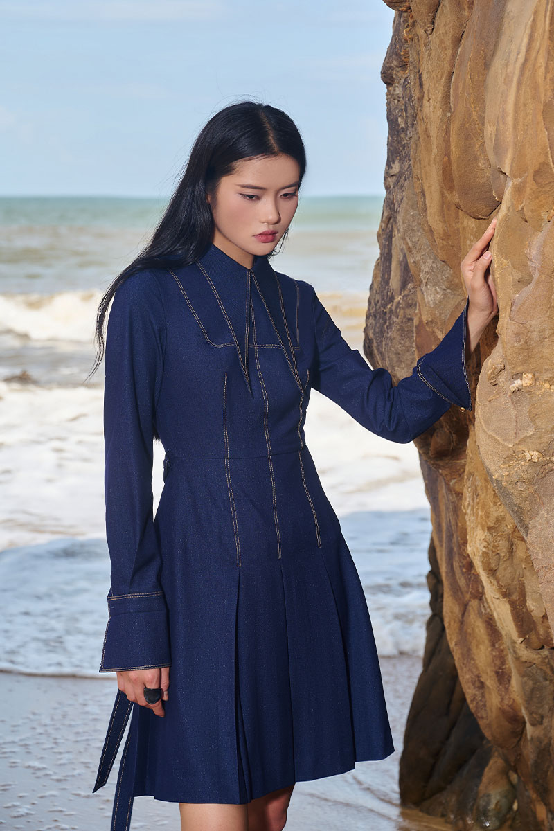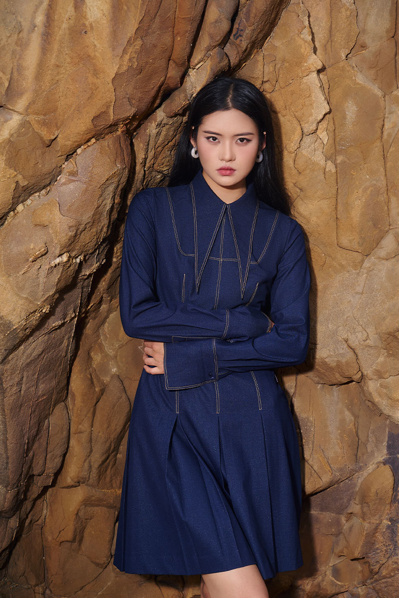Đầm xoè giả bò diễu chỉ cổ nhọn cách điệu