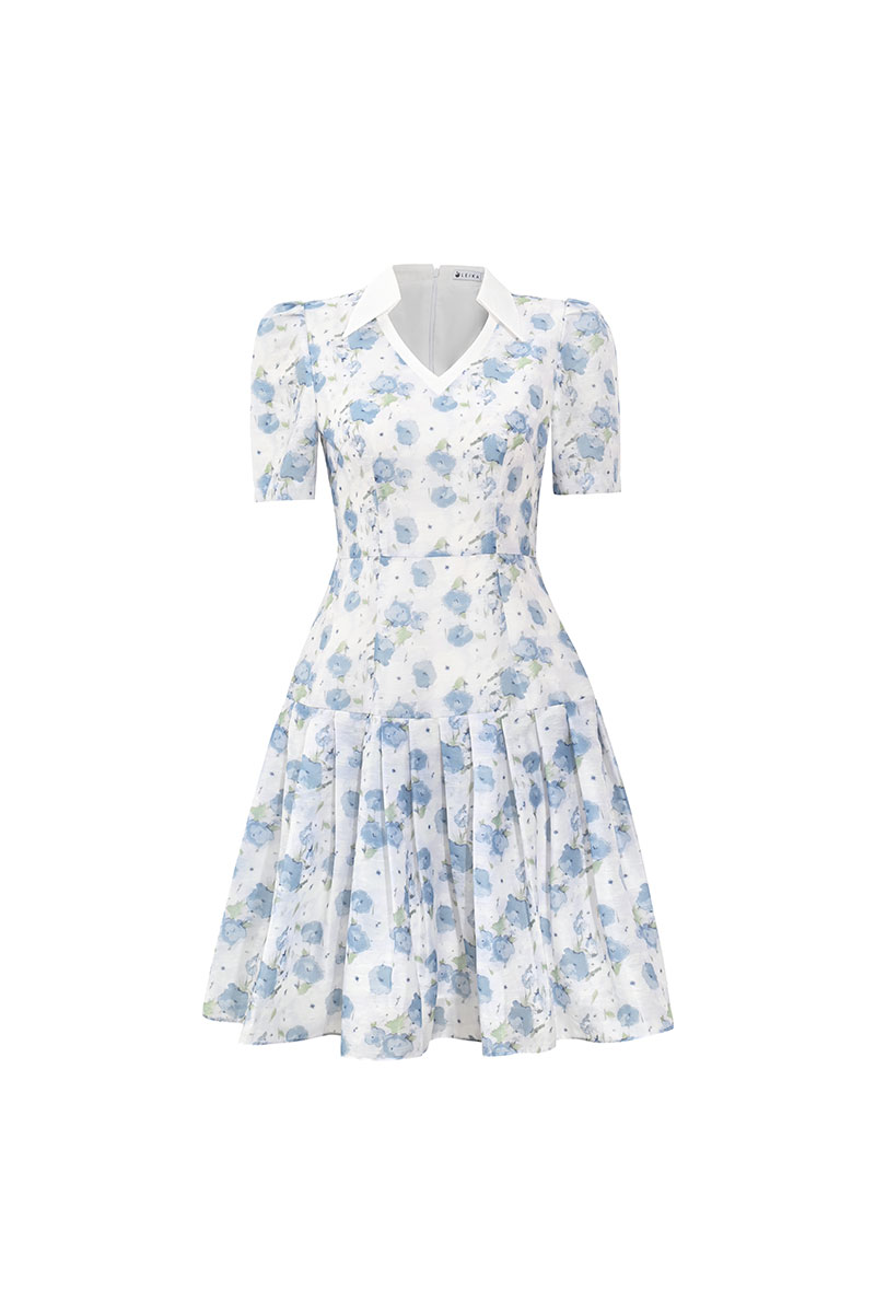 Đầm xoè hoạ tiết tùng xếp ly