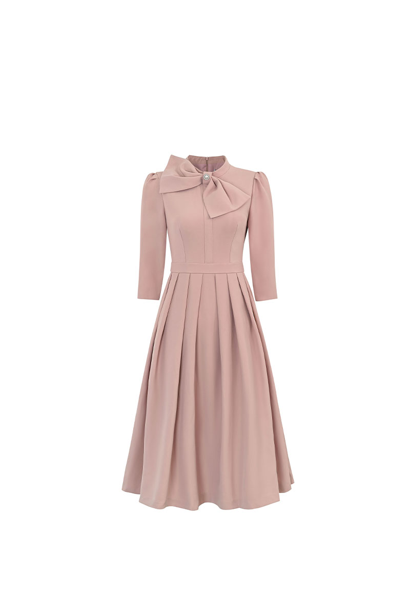 Đầm xoè xếp ly nơ cổ