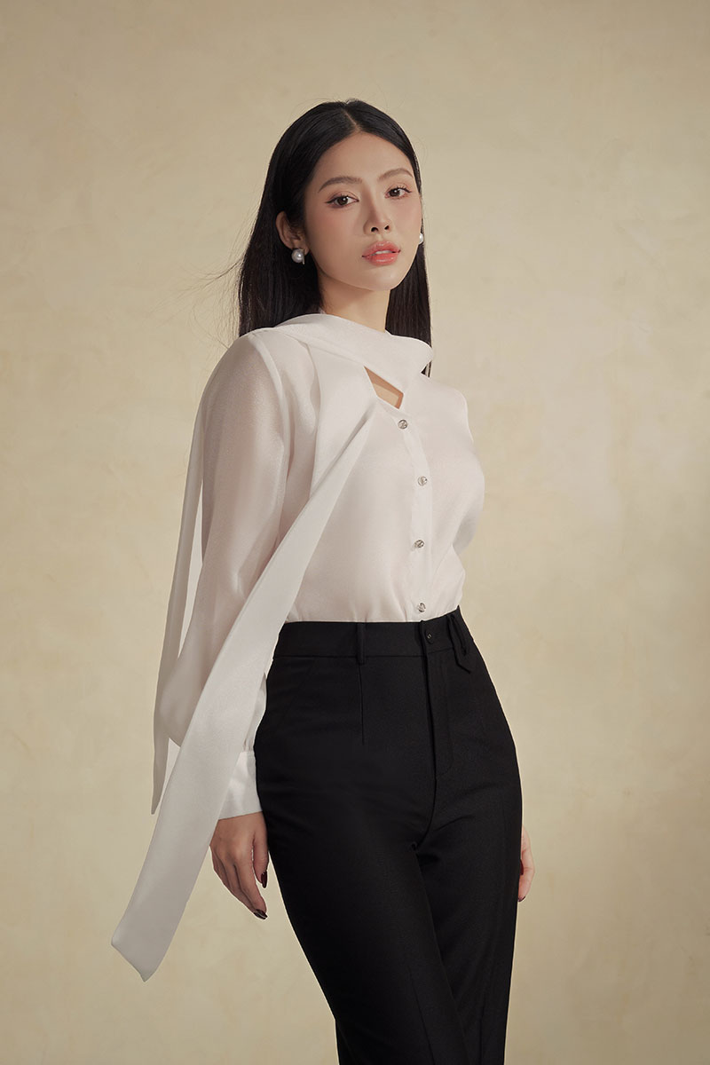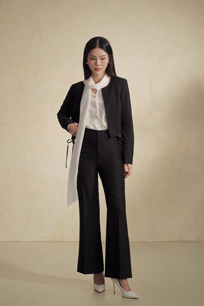 Quần loe cá 1 bên cạp trang trí