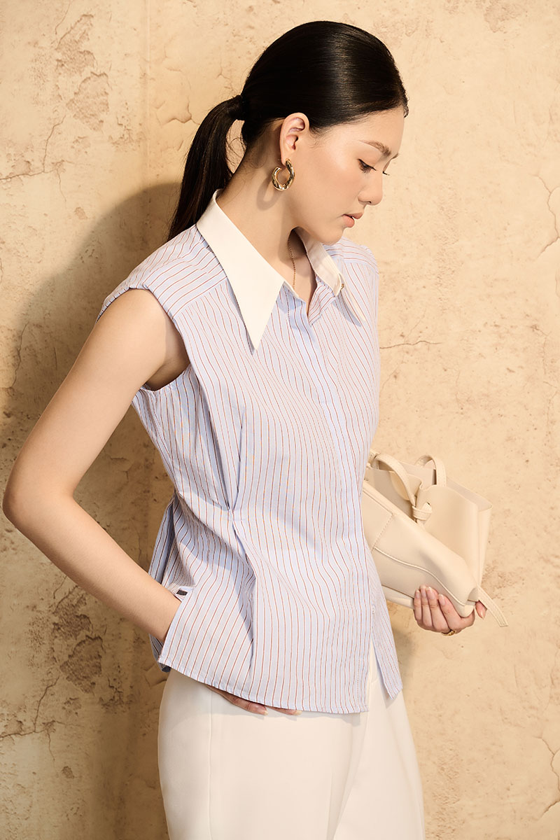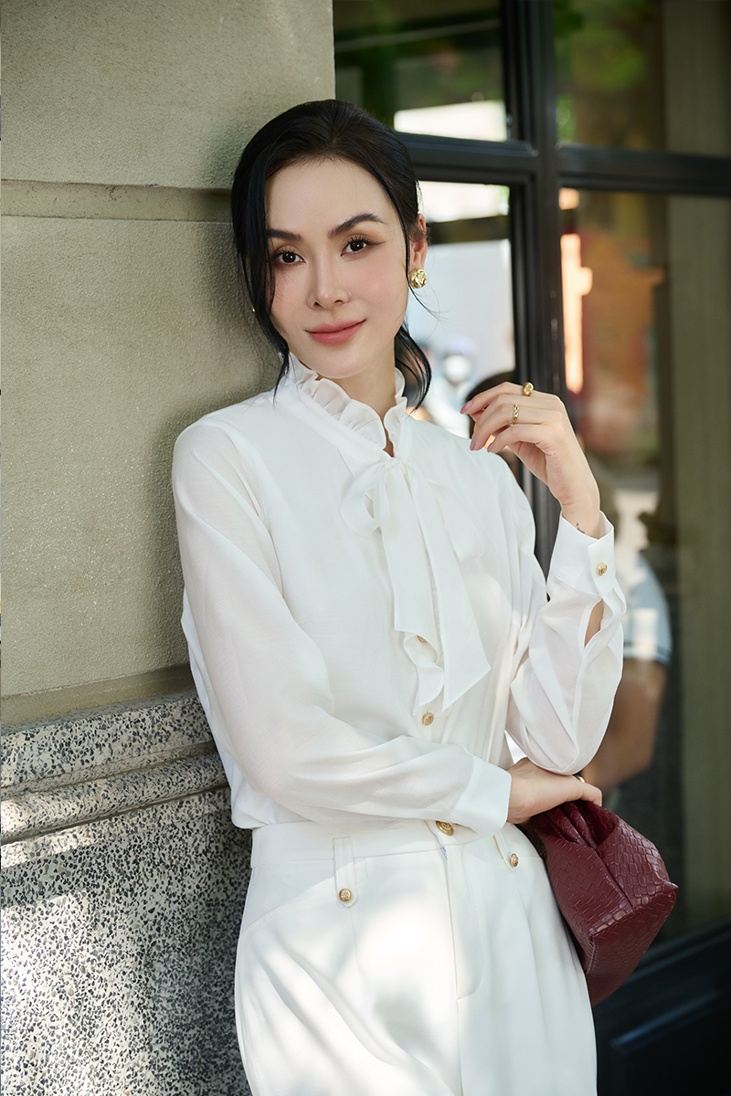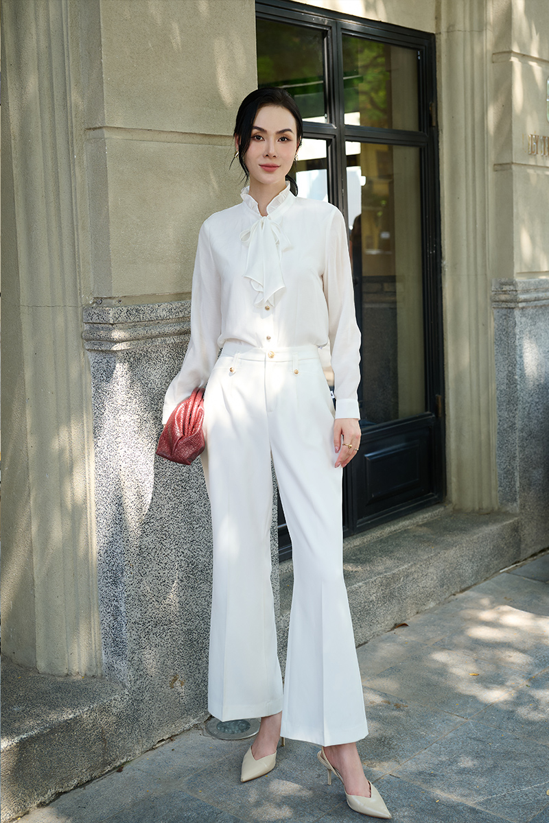 Sơ mi DT nẹp cổ bèo buộc nơ