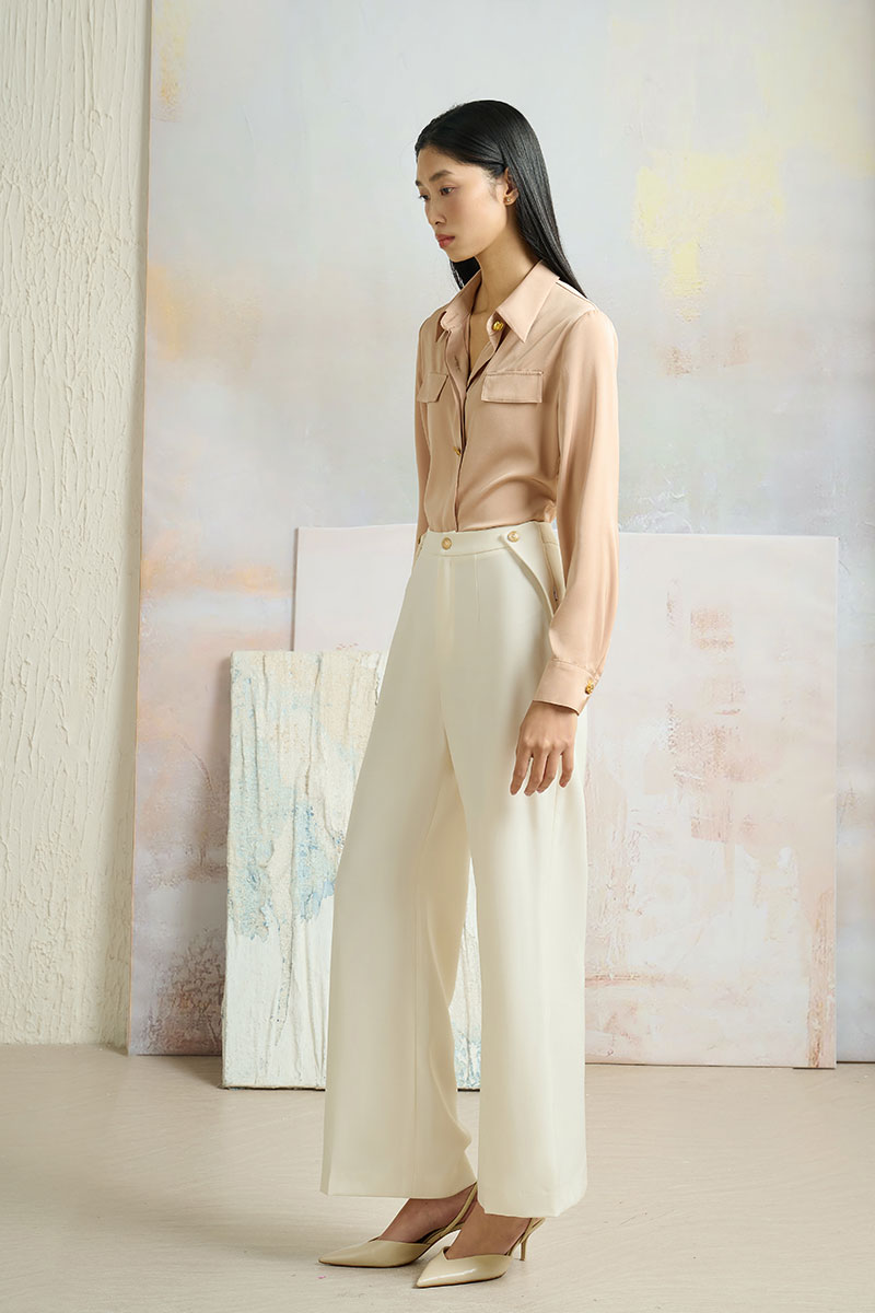 Quần loe vạt sườn bong đính cúc