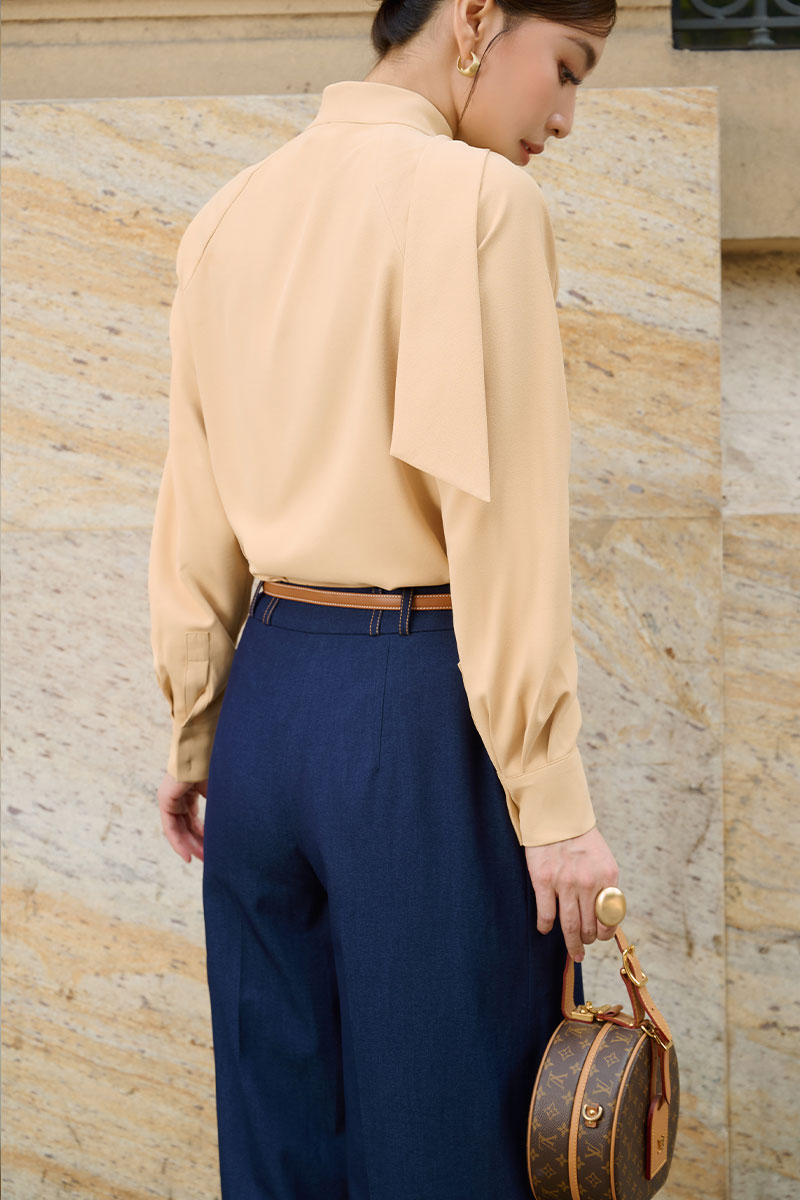 Quần suông giả jean xếp ly đỉa kẹp đôi