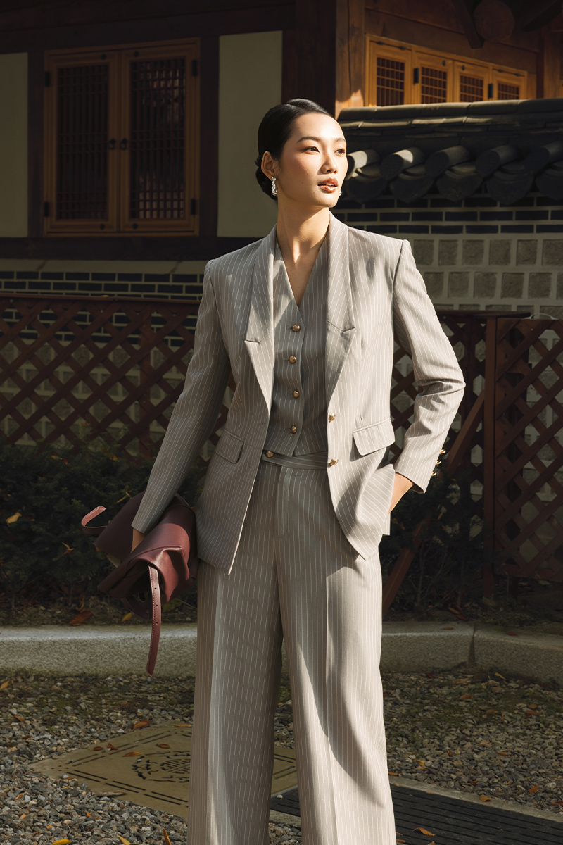 Quần suông kẻ cạp quai nhê
