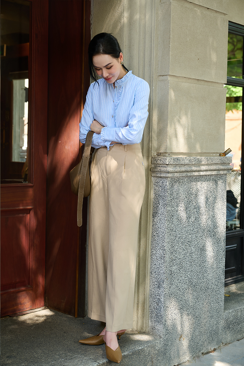 Vải nhẹ êm, mặc cả ngày vẫn dễ chịu, dáng quần thanh lịch, hợp đi chơi hay công sở.