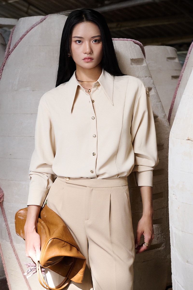 Sơ mi DT can thân liền cá vai đính cúc