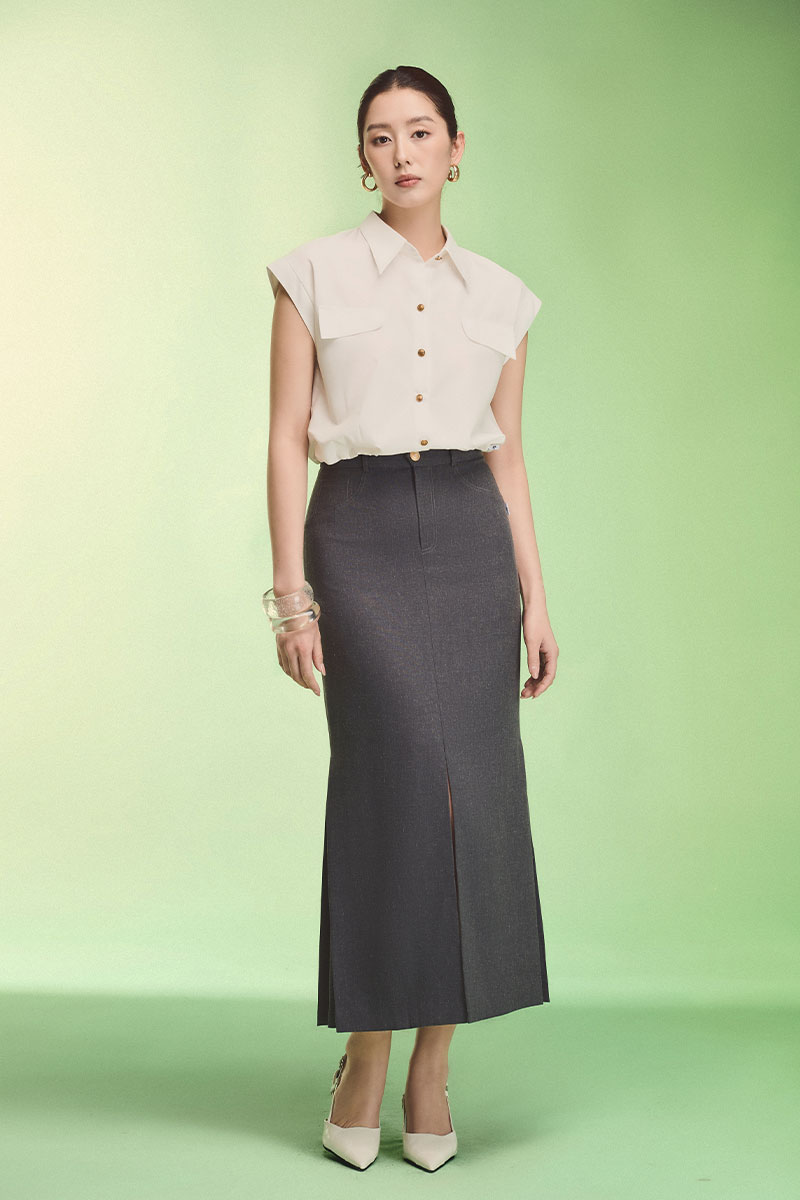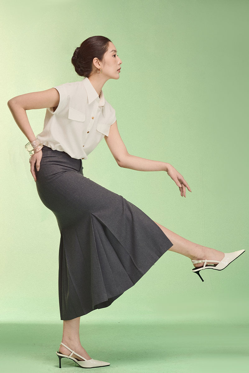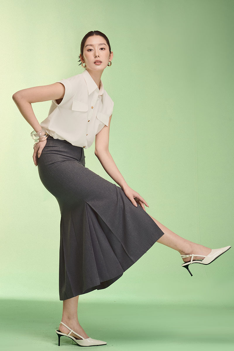 vải cotton thoáng mát, vải thoáng mát dễ chịu, lên dáng thanh lịch. tạo style thanh lịch cùng chân váy. đẹp lắm