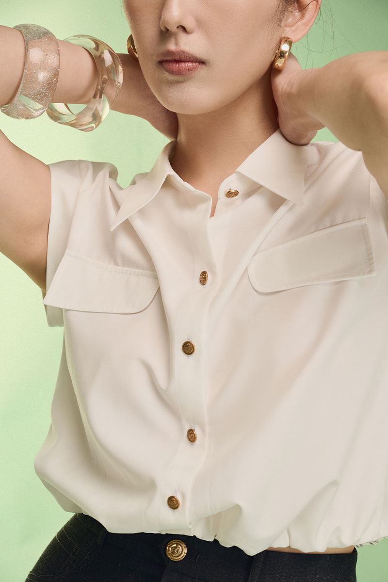 Sơ mi CT gấu chun nắp túi ngực