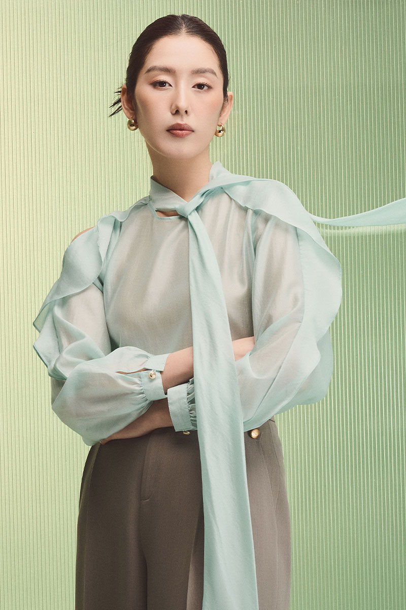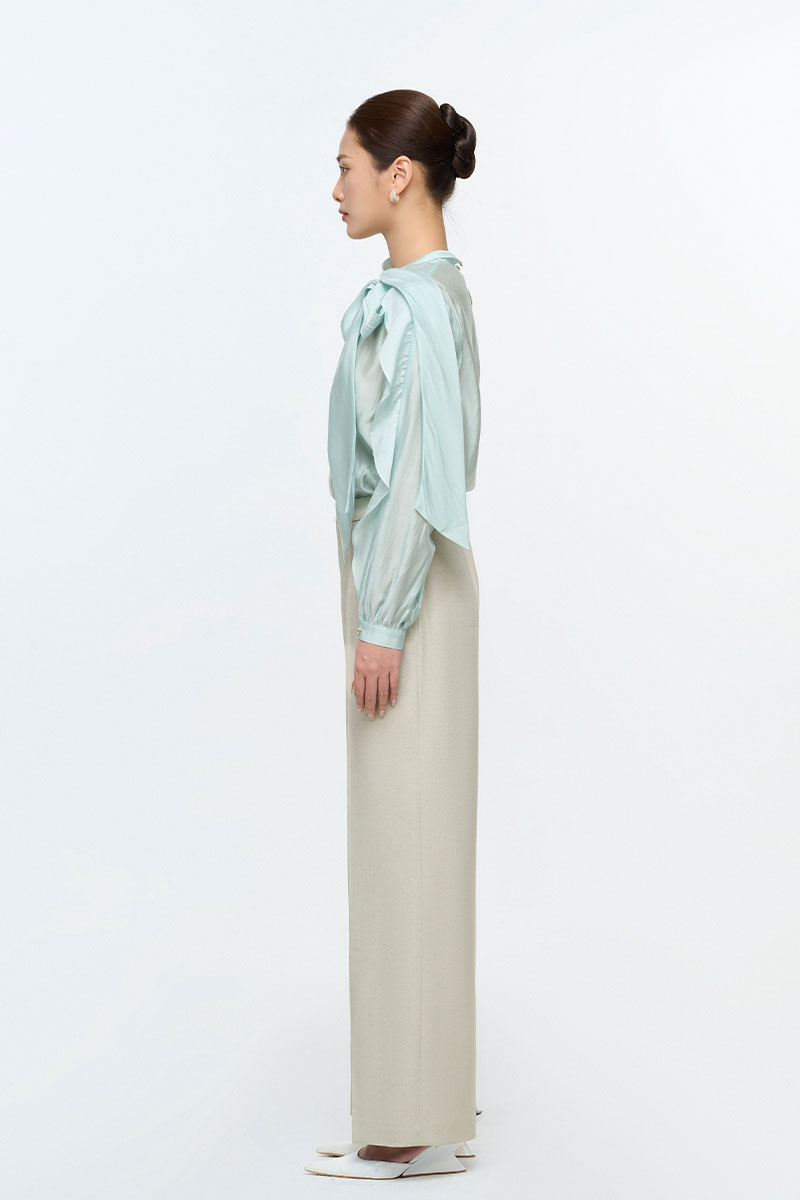 Sơ mi DT bèo xẻ cửa tay cổ buộc nơ